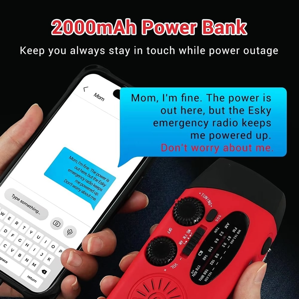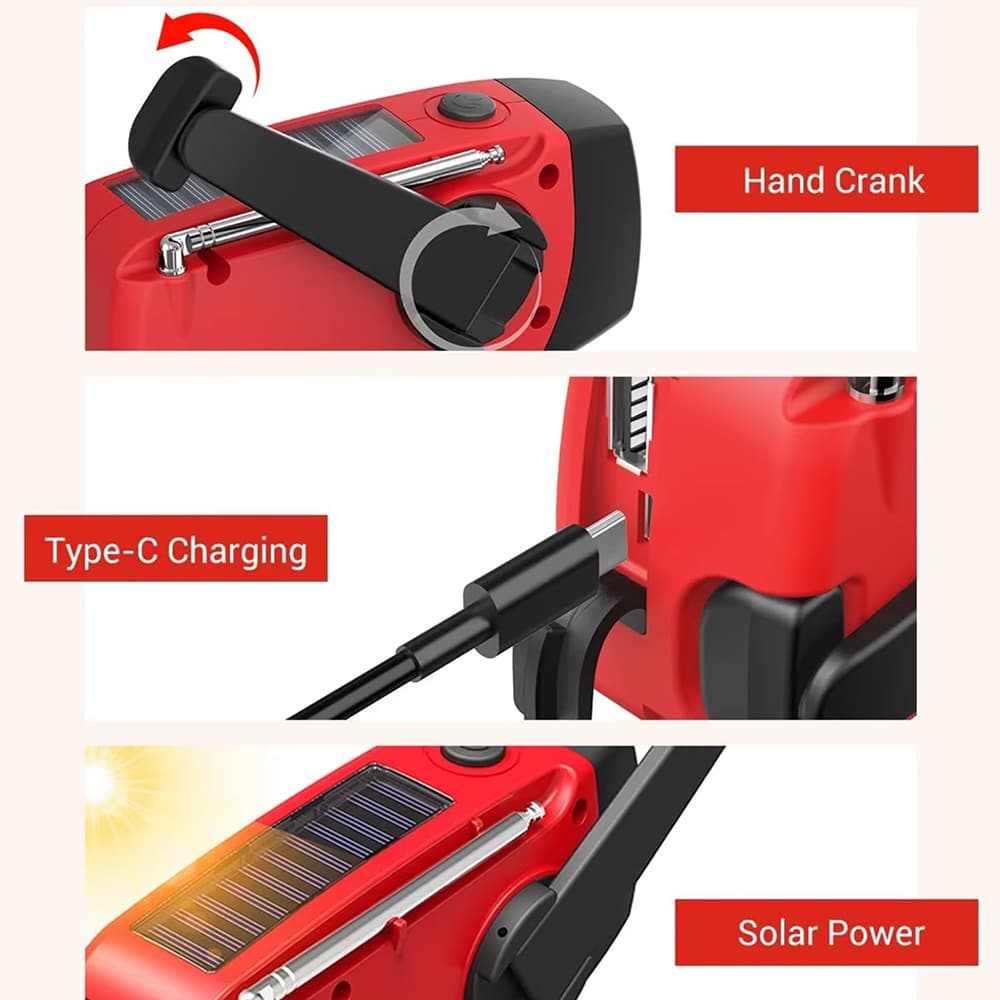 The 2000mAh rechargeable battery charges smartphones, tablets, and USB devices through the convenient Type-C port. Keep your communication devices powered during emergencies, ensuring you can call for help, receive updates, and stay connected with loved ones.