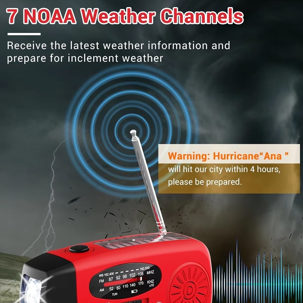 The AtmosAler NOAA Weather Radio receives broadcasts from 7 weather channels, delivering real-time alerts about hurricanes, tornadoes, and severe storms. Stay ahead of dangerous weather conditions and protect your family with instant emergency notifications.