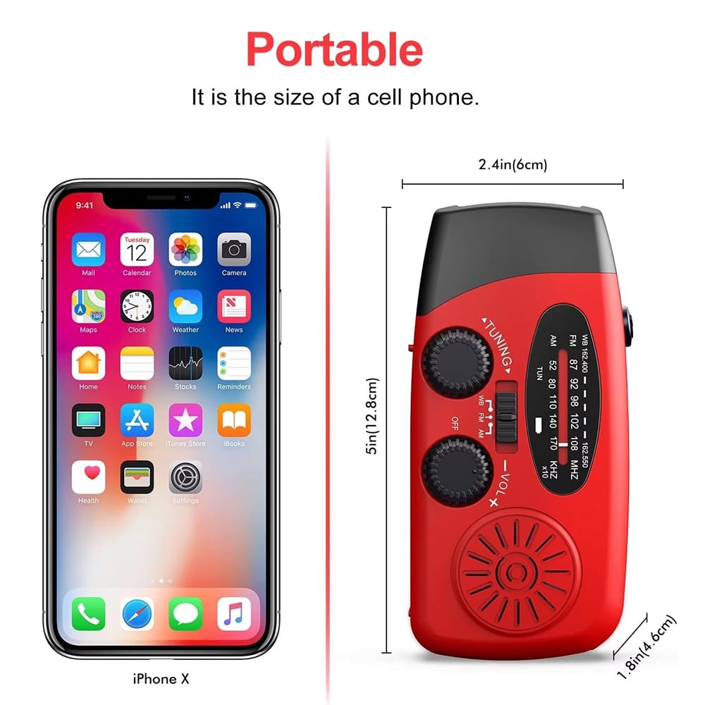 Measuring just 5 inches, the AtmosAler fits easily in backpacks and emergency kits. Enjoy AM/FM entertainment, weather monitoring, and emergency preparedness without sacrificing valuable space or adding extra weight.