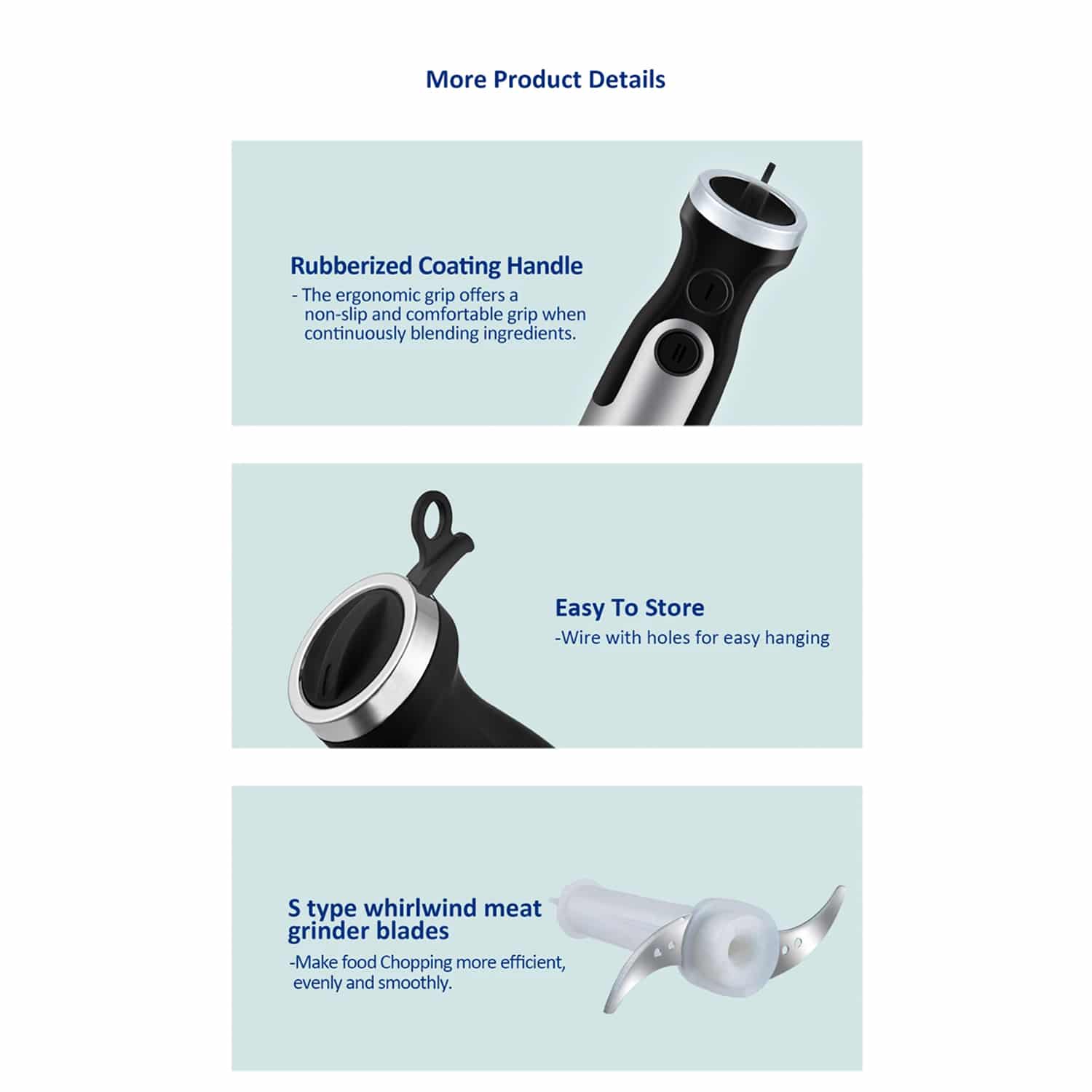 The BlenDorie Immersion Blender simplifies cooking with its ergonomic design, anti-splash blade guard, and detachable dishwasher-safe components. Compact storage and effortless operation make healthy meal preparation accessible for everyone.