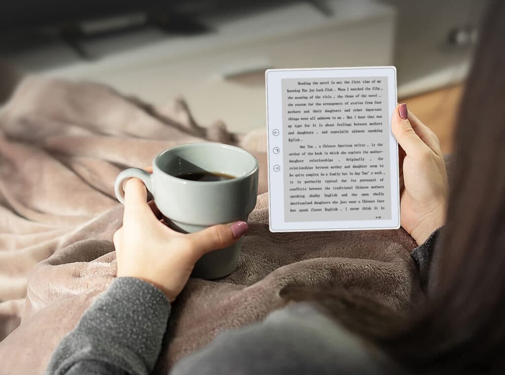 The lightweight 170g design and ergonomic profile ensure comfortable one-handed operation during extended reading sessions without hand fatigue.