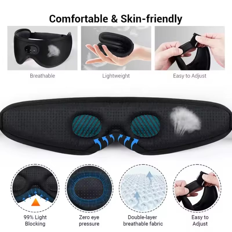 Convenient built-in control buttons on the side of the mask let you adjust volume, skip tracks, play/pause, and activate the auto-off timer without reaching for your phone or removing the mask.