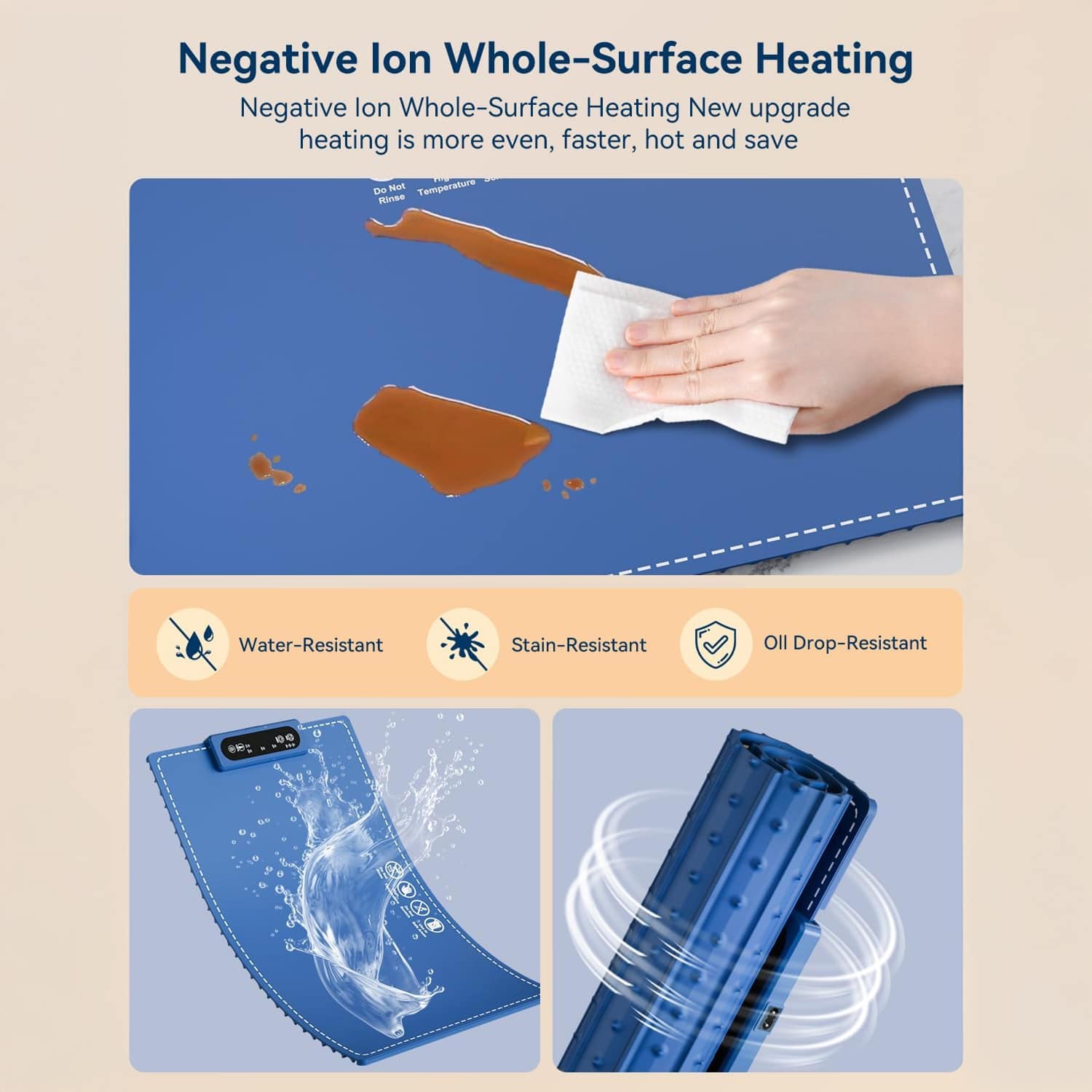 The mat heats up in just 10 seconds using advanced Negative Ion Whole-Surface Heating technology for rapid, even warming.