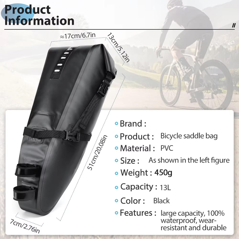 Premium PVC construction resists UV degradation, abrasion, and temperature extremes. The Cyclorav Bicycle Saddle Bag withstands years of demanding use while maintaining structural integrity and waterproof performance.