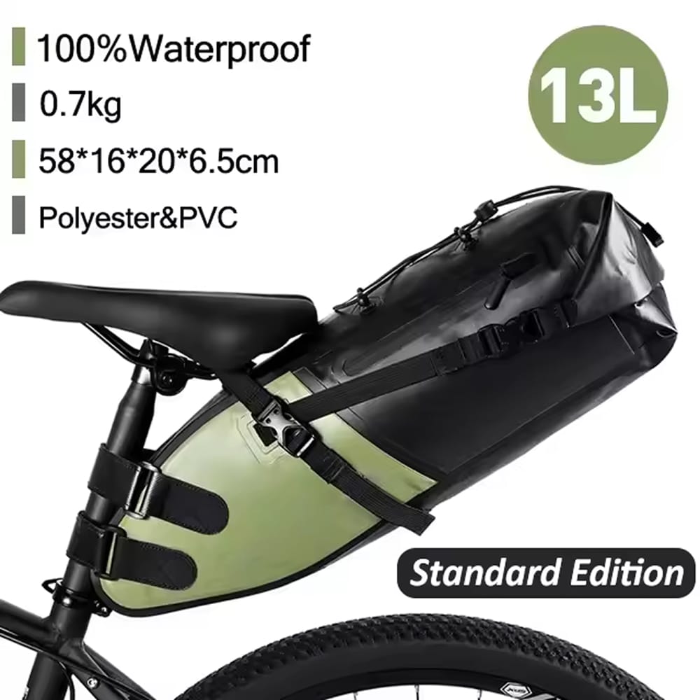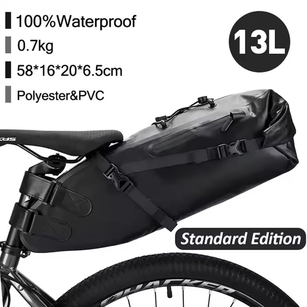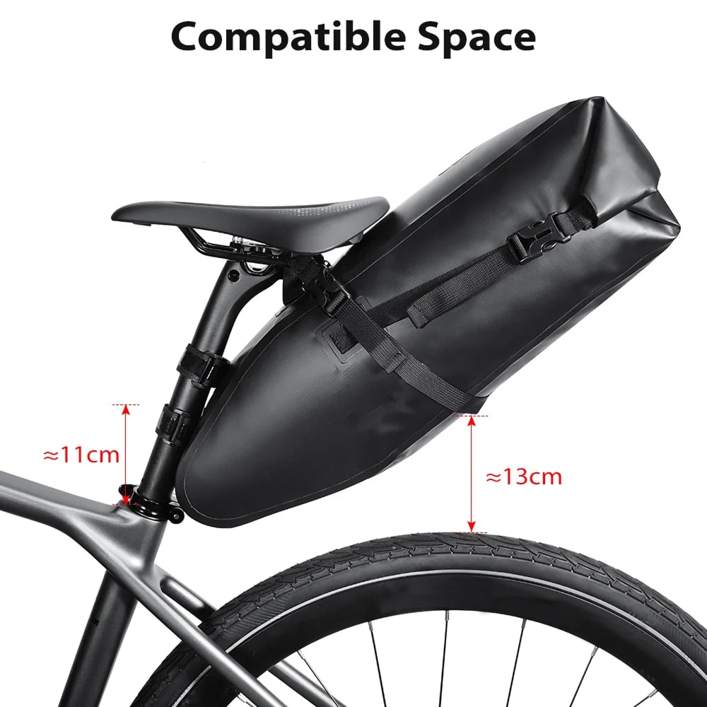 The Cyclorav Bicycle Saddle Bag offers adjustable 7L-13L capacity with three storage configurations. Perfect for day trips or multi-day adventures, it expands when you need more gear and compresses for lighter loads without requiring bulky rear racks.