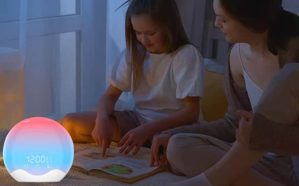 Yes, the sunset simulation feature gradually dims light while playing soothing sounds. This natural approach helps you fall asleep faster and improves overall sleep quality throughout the night.