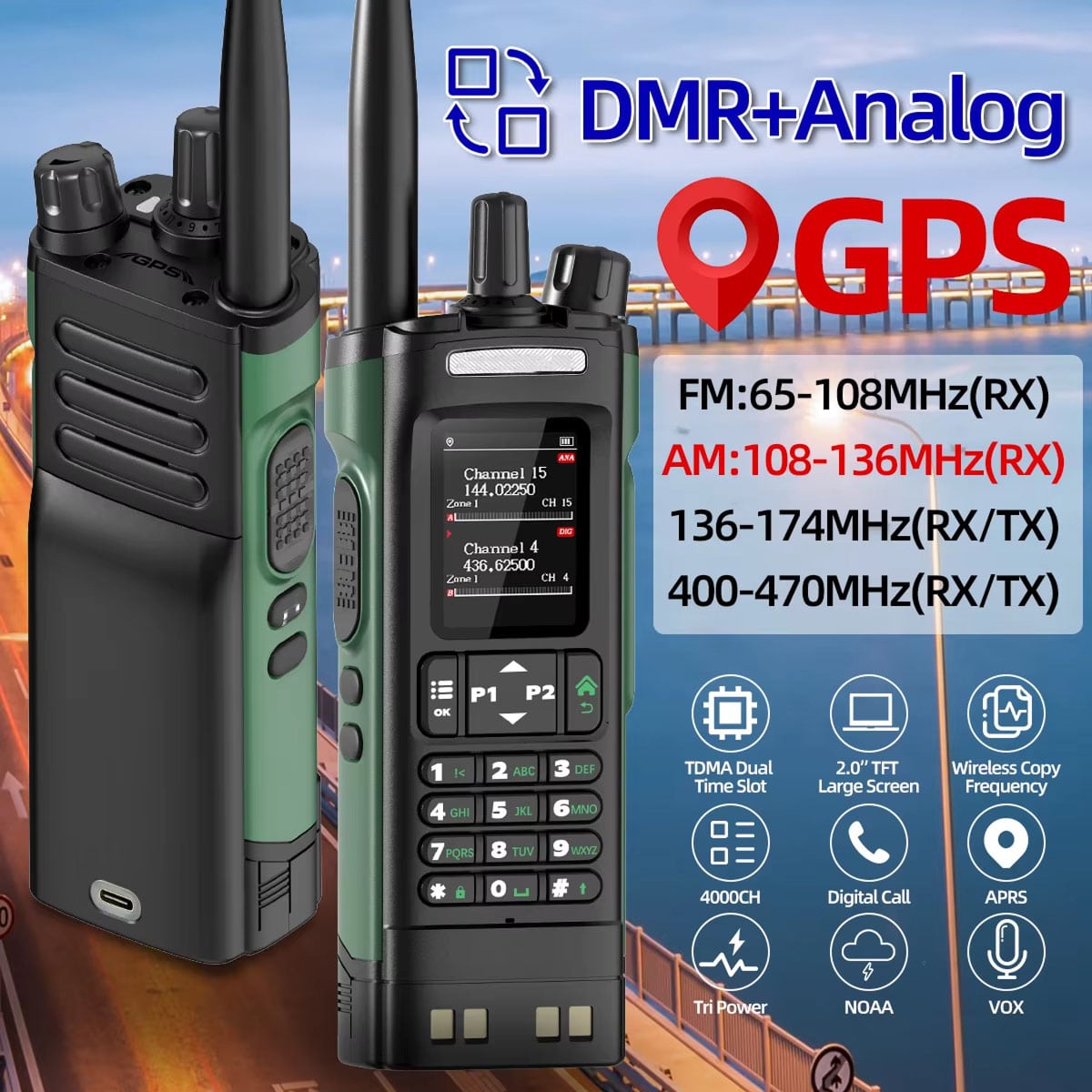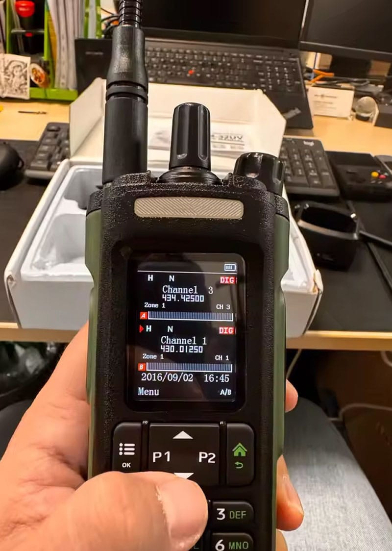 Absolutely. The DirioVexy is perfect for amateur radio enthusiasts, covering VHF and UHF ham bands with DMR digital mode support and traditional analog operation for maximum versatility.
