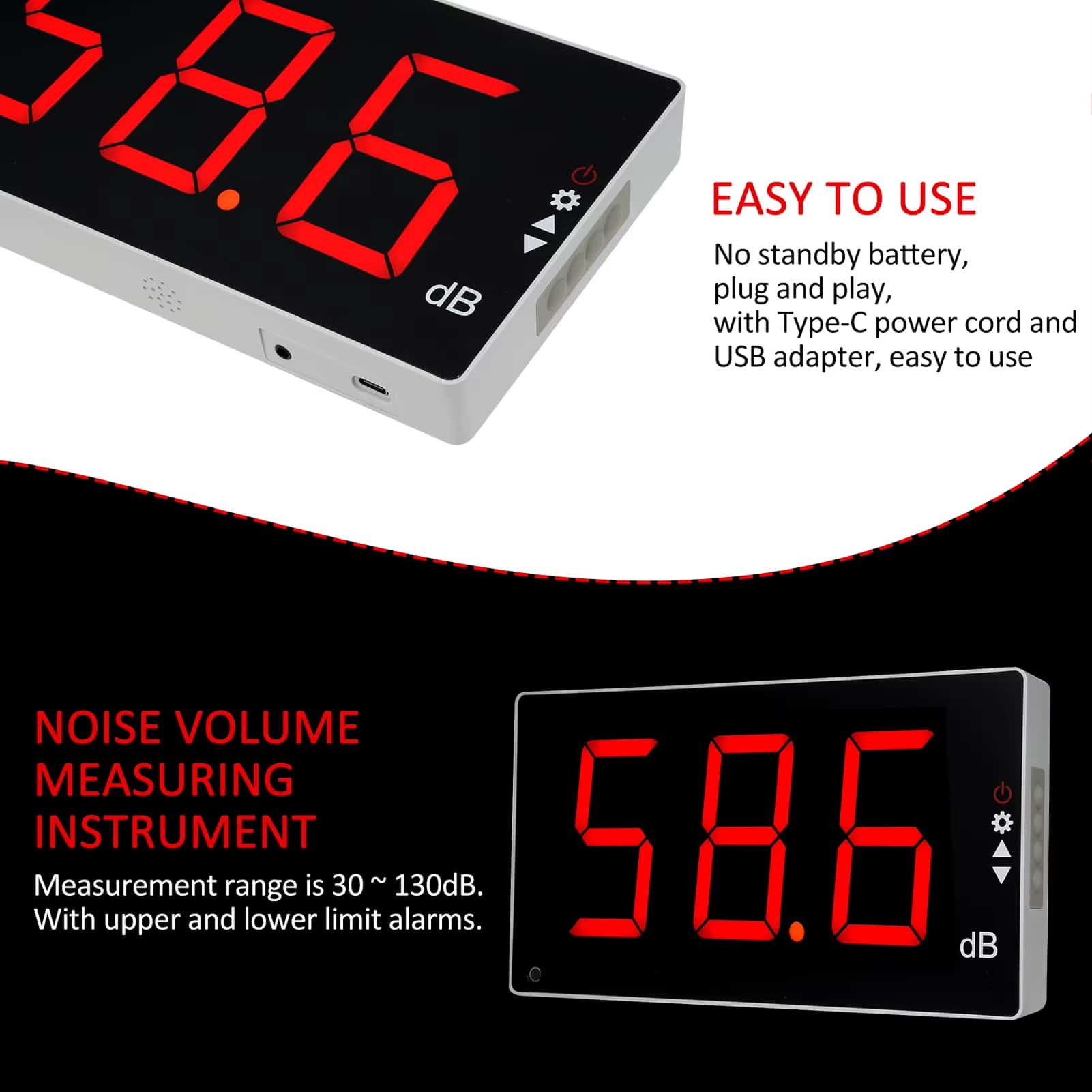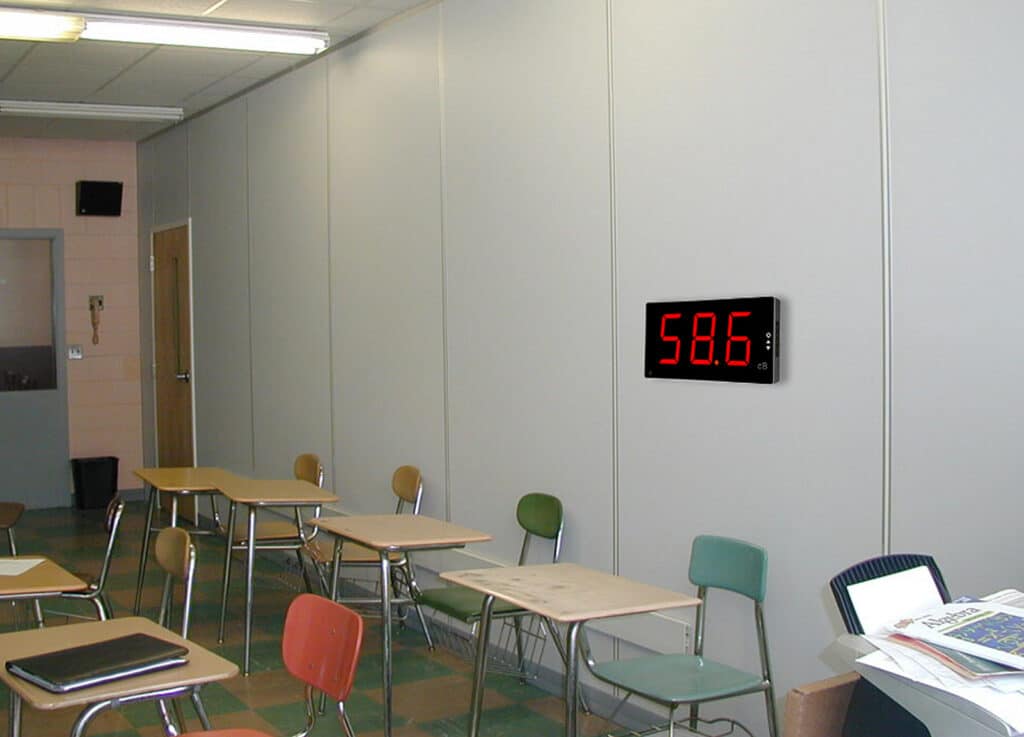 The oversized red LED digits are clearly visible from 30+ feet away, ensuring every student in standard classrooms can see real-time decibel levels without straining, making it perfect for large learning spaces.