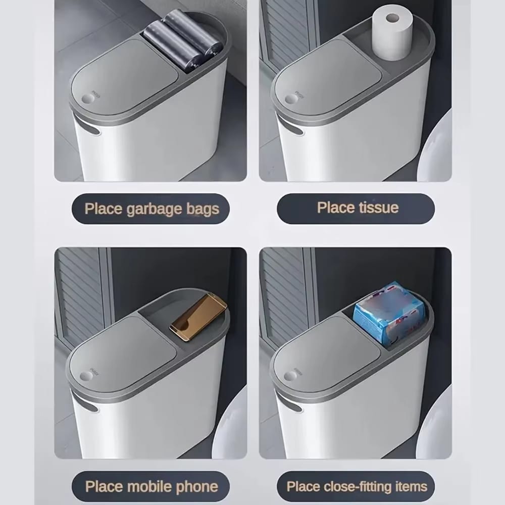 Absolutely! While designed for bathrooms, the FlushiBin works beautifully in kitchens, bedrooms, home offices, or living rooms. Its modern style and compact size make it versatile enough for any room where you need convenient, organized waste disposal.