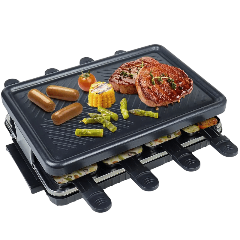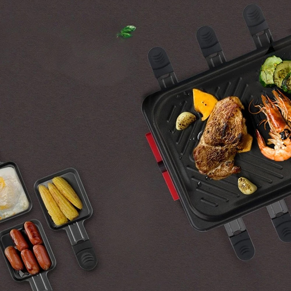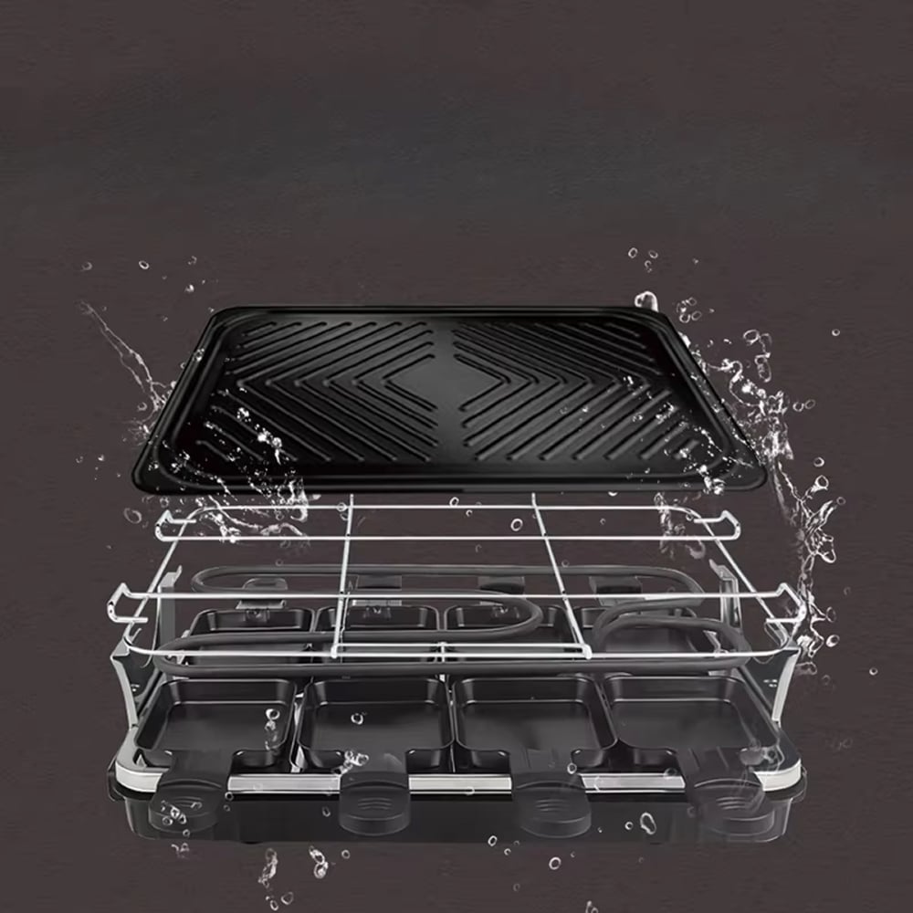 Absolutely. The individual cooking pans and separate grill zones allow simultaneous preparation of different ingredients without flavor transfer, perfect for accommodating various dietary preferences at one meal.