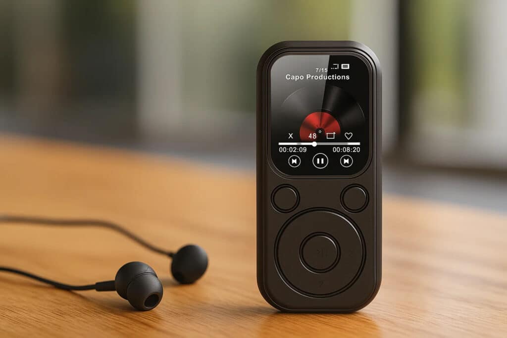 Yes, the Grooviok Portable Music Player includes a built-in speaker for quick listening without headphones. While headphones provide superior sound quality, the speaker offers convenient audio playback for casual listening, podcasts, or sharing music with friends nearby.
