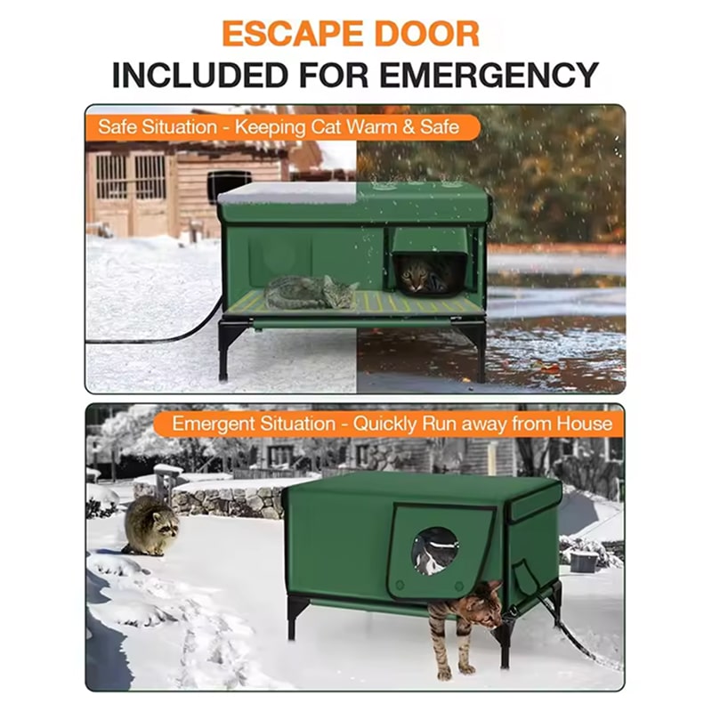 The magnetic escape door provides a quick exit route if predators approach while preventing cold drafts from entering, giving cats security and you peace of mind about their safety.