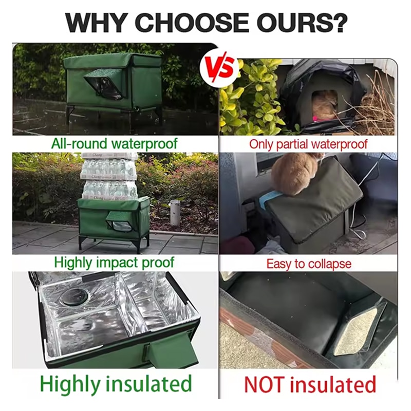 Incredibly durable construction. We’ve had heavy snow and rain, but the interior stays completely dry. My outdoor cats spend every night inside now instead of hiding under the porch.
