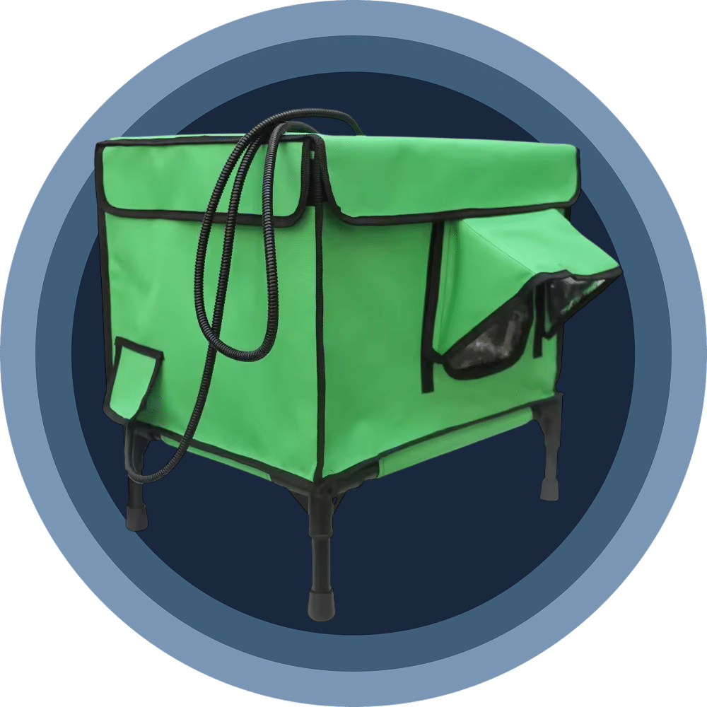 Six-inch leg risers lift the HeatoPury above snow, puddles, and frozen ground, providing better insulation and keeping your cats away from dampness and ground-dwelling pests or dangers.