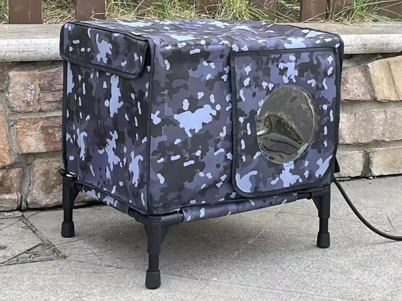 Easy assembly and the raised base is genius for keeping cats dry. The chew-resistant cord survived my cat’s attempts, and the temperature control lets me adjust for weather changes.