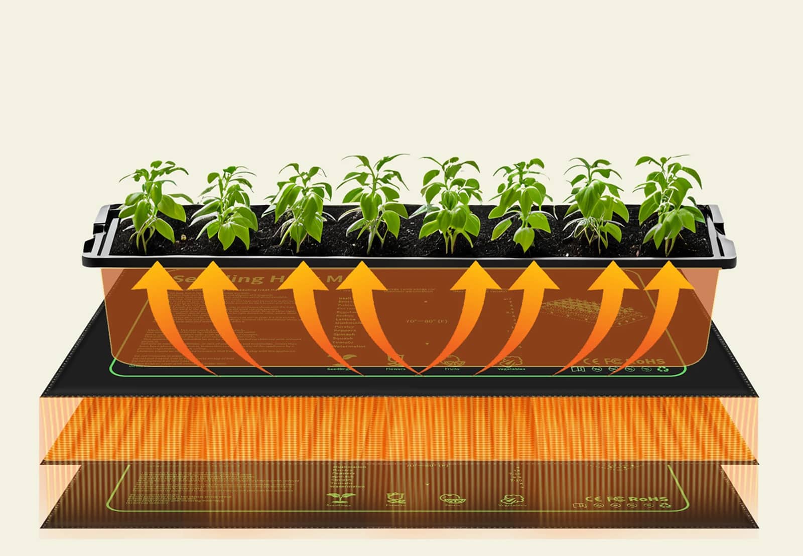 The mat warms the root zone 10-20°F above room temperature, creating ideal germination conditions. This consistent bottom heat significantly improves sprouting rates for most seeds without overheating delicate roots.