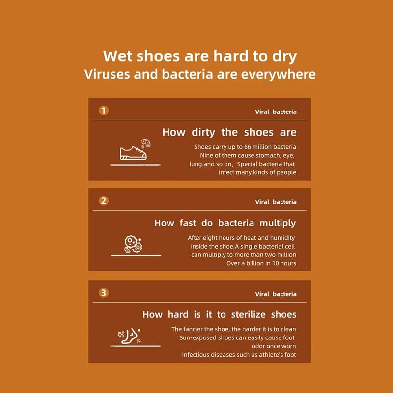 HeelFirex prevents bacterial multiplication in damp shoes, eliminates odors immediately, and saves time. Natural drying takes days and allows bacteria to multiply rapidly.