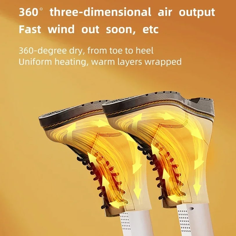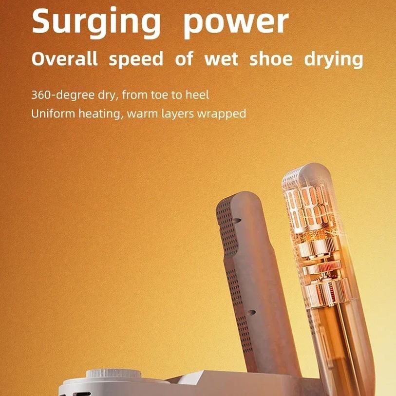 Most shoes dry completely within 1-2 hours depending on material and wetness level. The 360° hot air circulation ensures thorough drying from heel to toe efficiently.