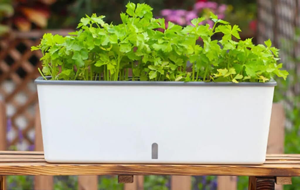 The clear water level indicator shows exactly when reservoir needs refilling, eliminating guesswork and preventing plant stress.