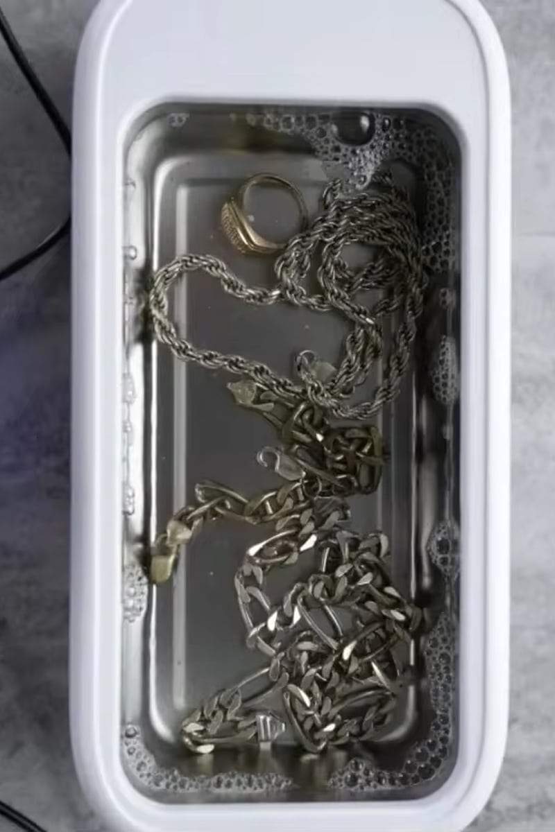 JewelyClin safely cleans jewellery, watches, eyeglasses, dentures, razor heads, and other small items. The gentle ultrasonic technology works on gold, silver, platinum, diamonds, and most gemstones without causing damage to delicate pieces.