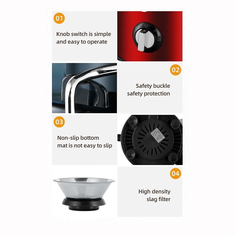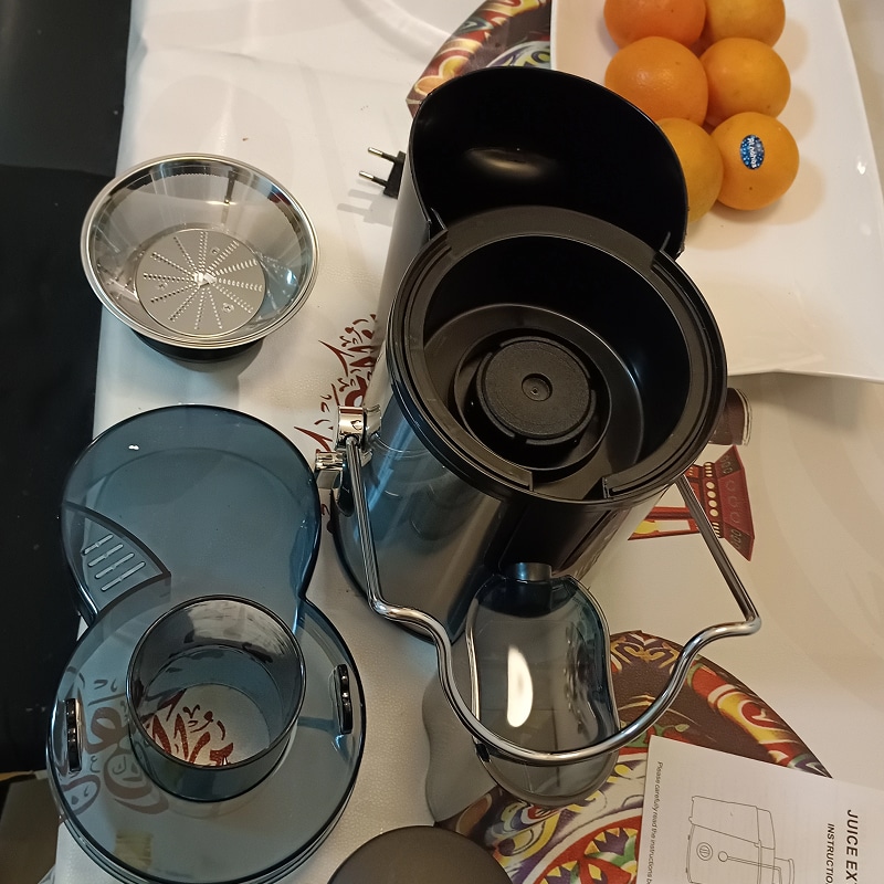 Compact design - about 35cm tall and 20cm wide - fits most counters without hogging space. Despite the footprint, capacity is generous: 1500ml pulp container and 500ml juice cup. Strong performance without excessive size.