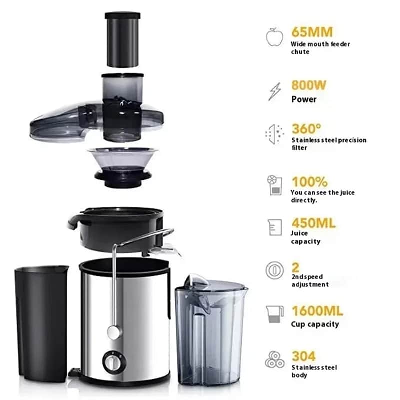360° stainless precision filter with 800W motor generates centrifugal force, efficiently separating juice from pulp. Extract up to 26% more liquid and 36% more vitamins versus standard juicers for nutrition.
