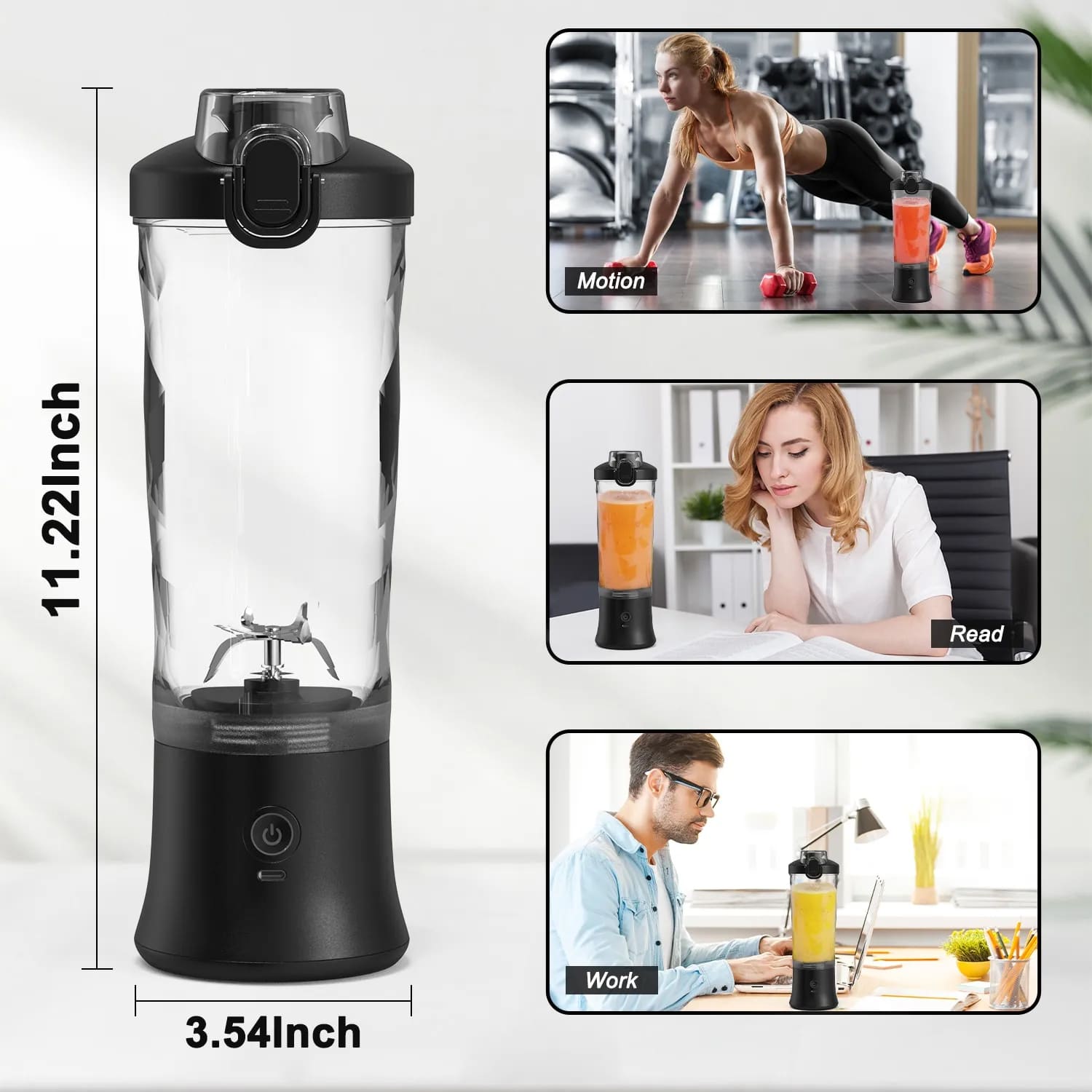 Simply double-click the power button to activate the blender. This safety feature prevents accidental activation in your bag and ensures safe operation. Single clicks won't start the motor.