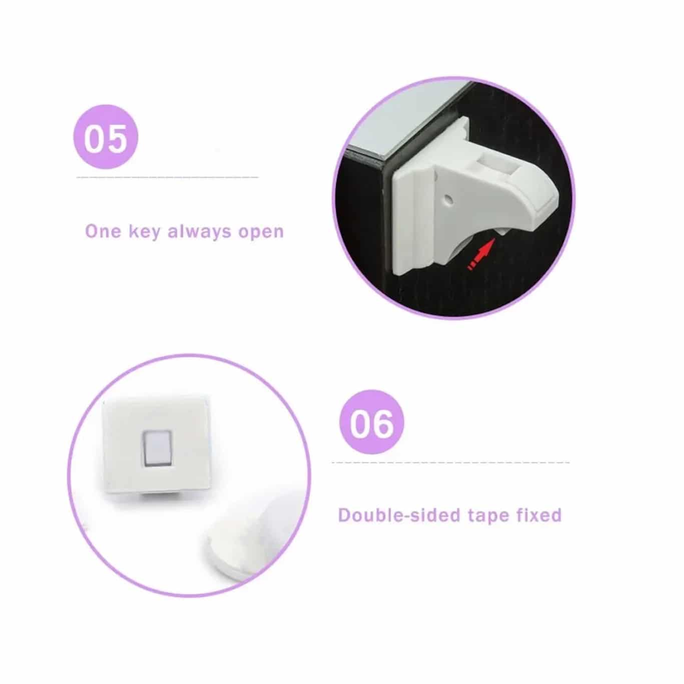 Always-open mode disables the lock by switching a button, allowing the drawer to open and close normally. Use this convenient feature when children aren't home or in rooms they don't access, saving you from using the magnetic key constantly.