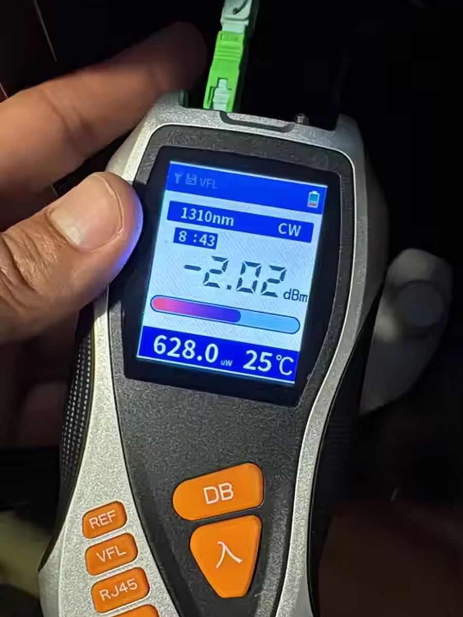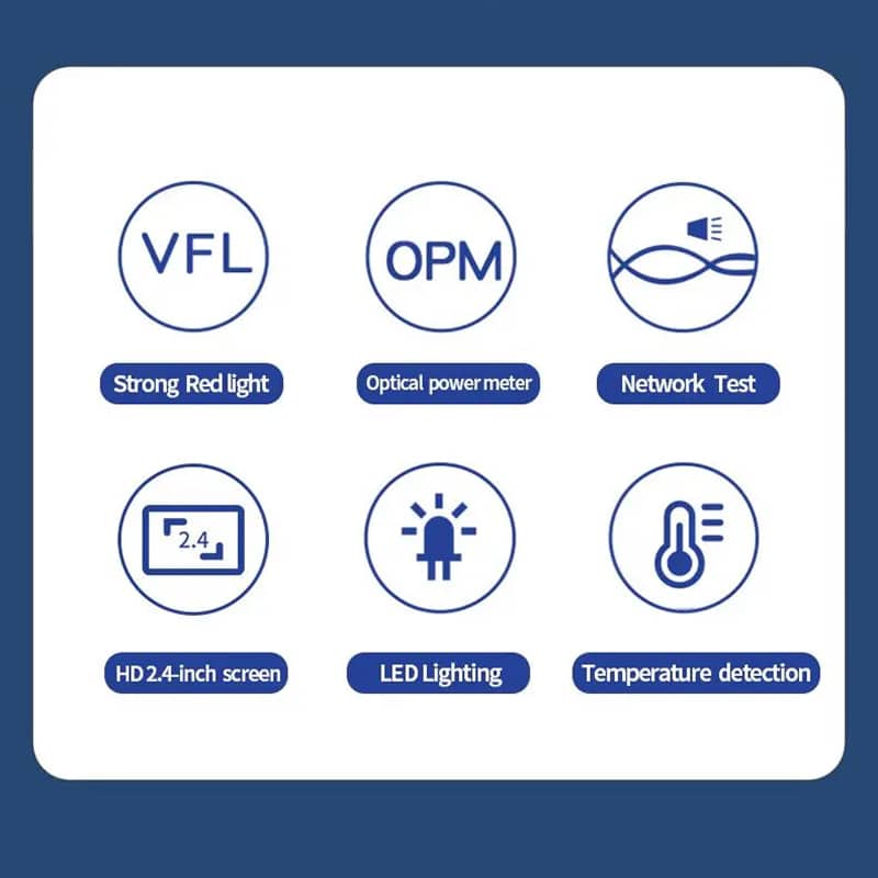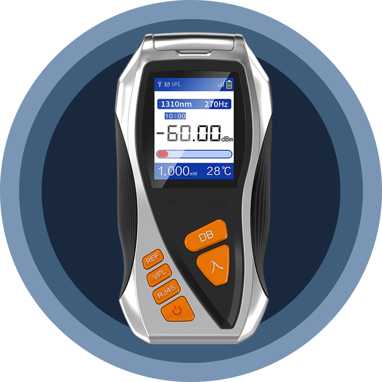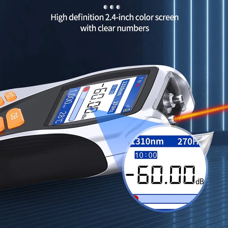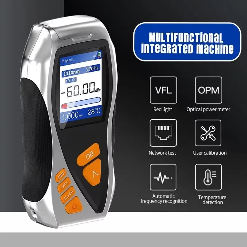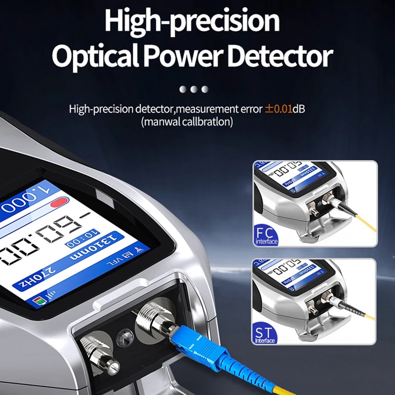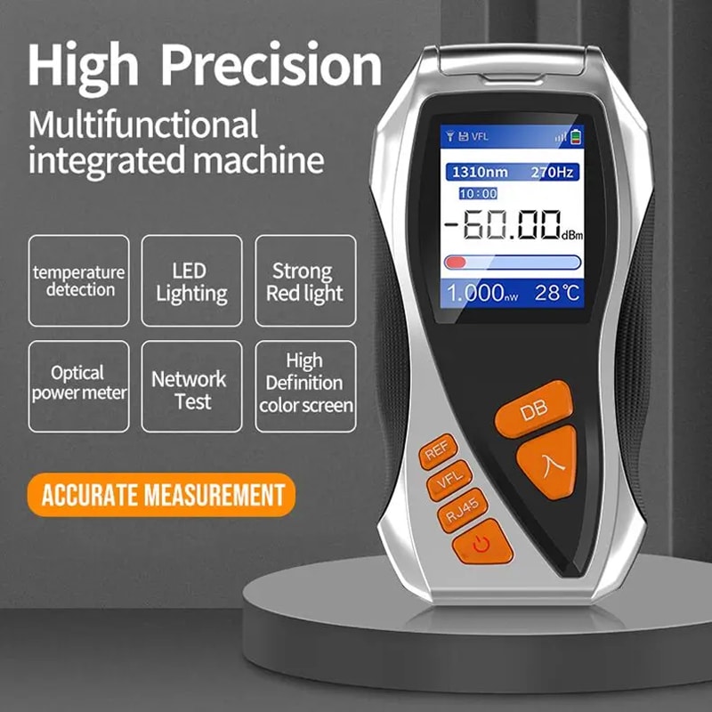 The device offers exceptional 0.01dB resolution with manual calibration capability and ±5% measurement uncertainty. This precision ensures professional-grade accuracy across the -50 to +26 dBm measuring range for reliable diagnostics.