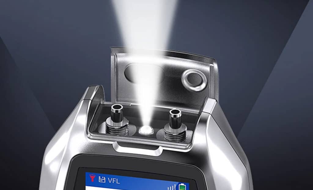 The OpticeSpot Visual Fault Finder supports nine pre-calibrated wavelengths: 850nm, 980nm, 1270nm, 1300nm, 1310nm, 1490nm, 1550nm, 1577nm, and 1625nm, covering all standard fiber optic testing requirements comprehensively.