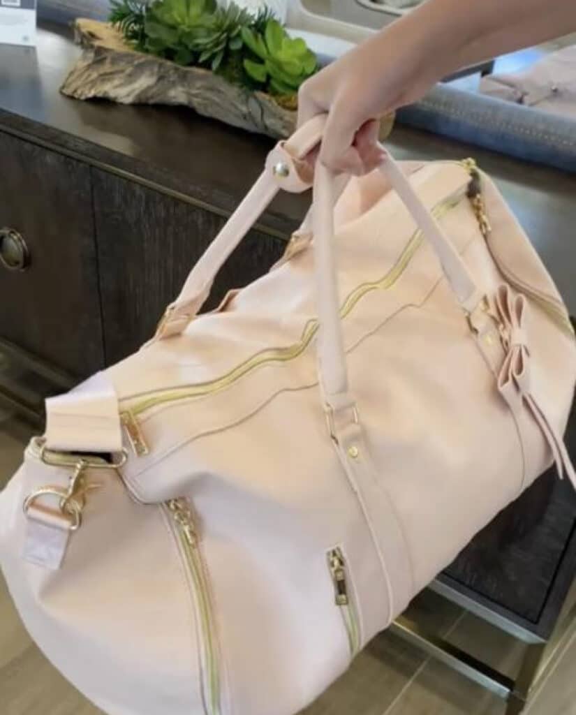 Featuring a stylish leather tassel and smooth gold zippers, this detail adds sophistication and functionality to your travel bag