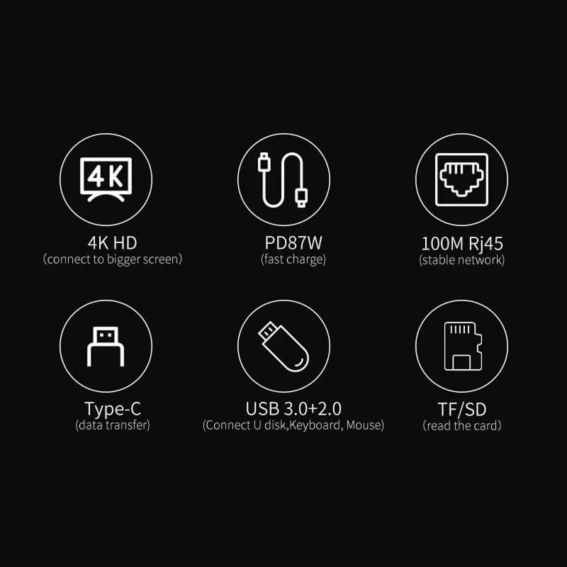 The Poroleky Multiport Adapter's USB 3.0 port delivers transfer speeds up to 5Gbps, allowing you to move large files quickly. Actual speeds depend on connected device capabilities and file types.