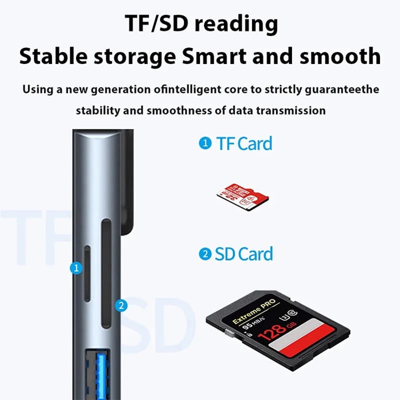 For optimal performance, the Poroleky Multiport Adapter reads one card at a time. Reading cards sequentially ensures stable data transmission and prevents potential conflicts between the two slots.