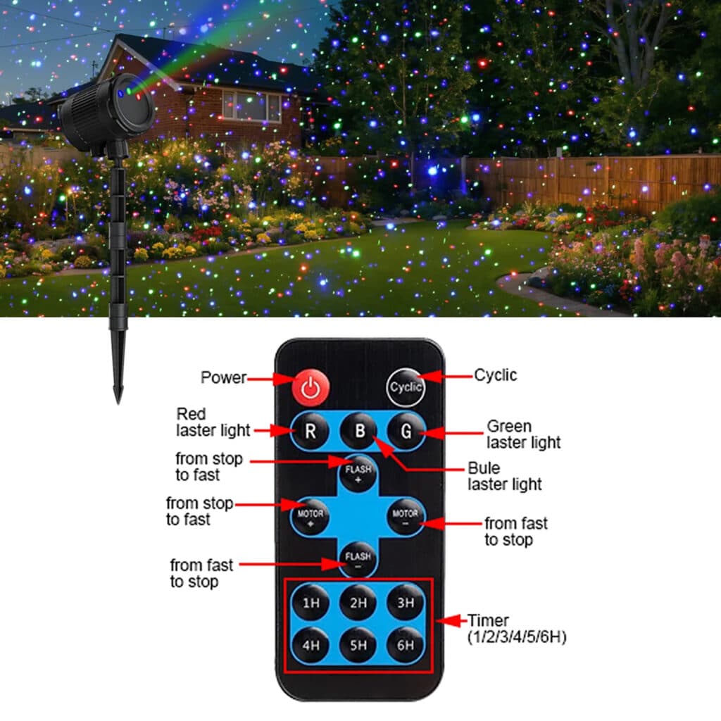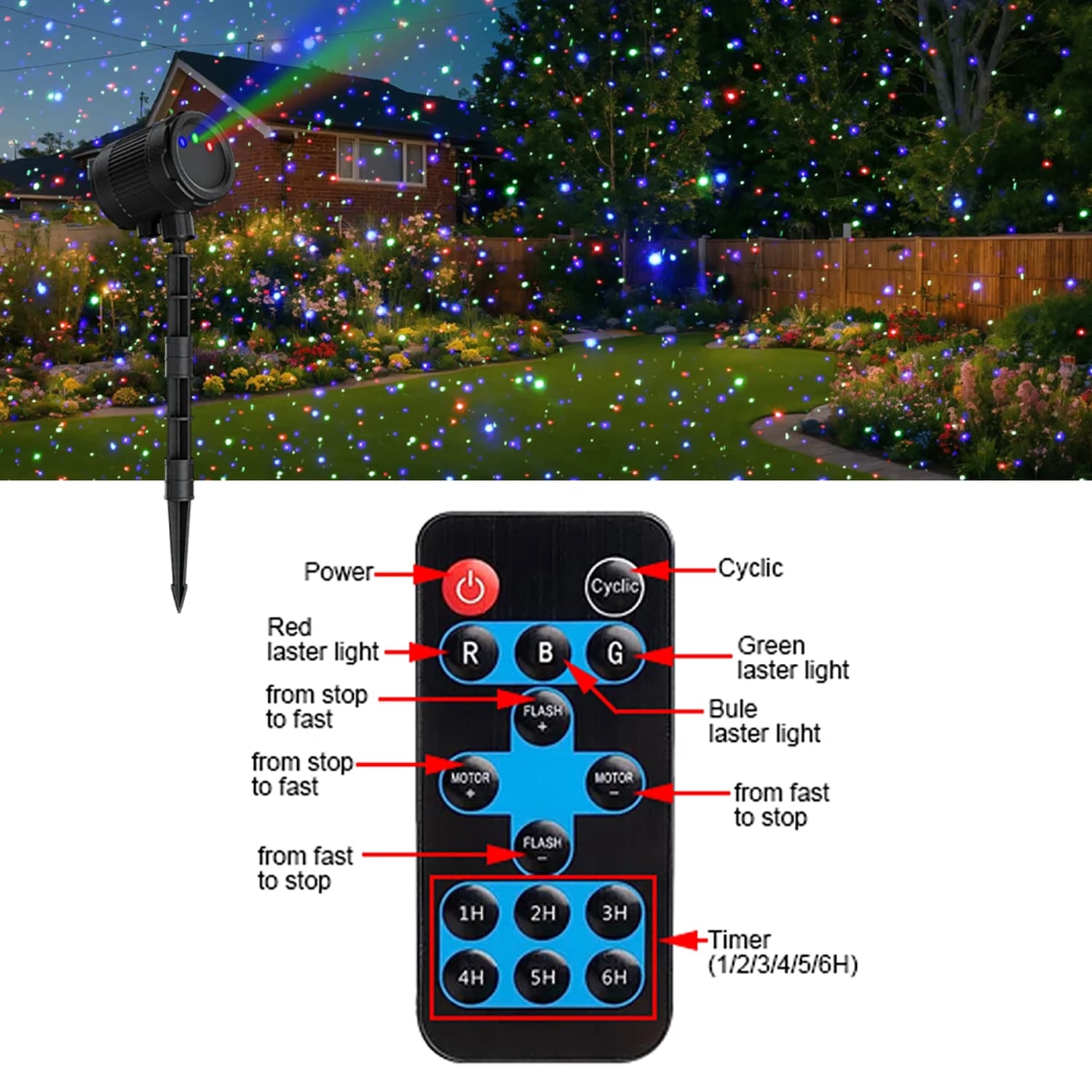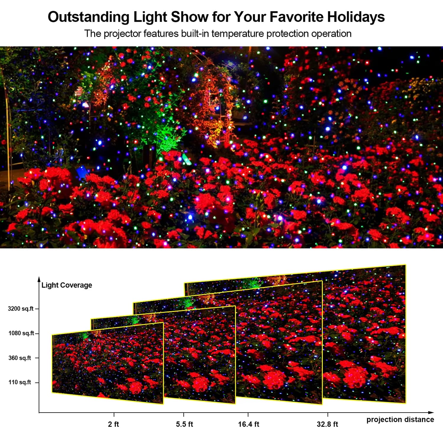 The projector covers over 3000 square feet when properly positioned. This expansive coverage allows illumination of entire yards, large building facades, or multiple landscape features from a single convenient mounting location for spectacular results.