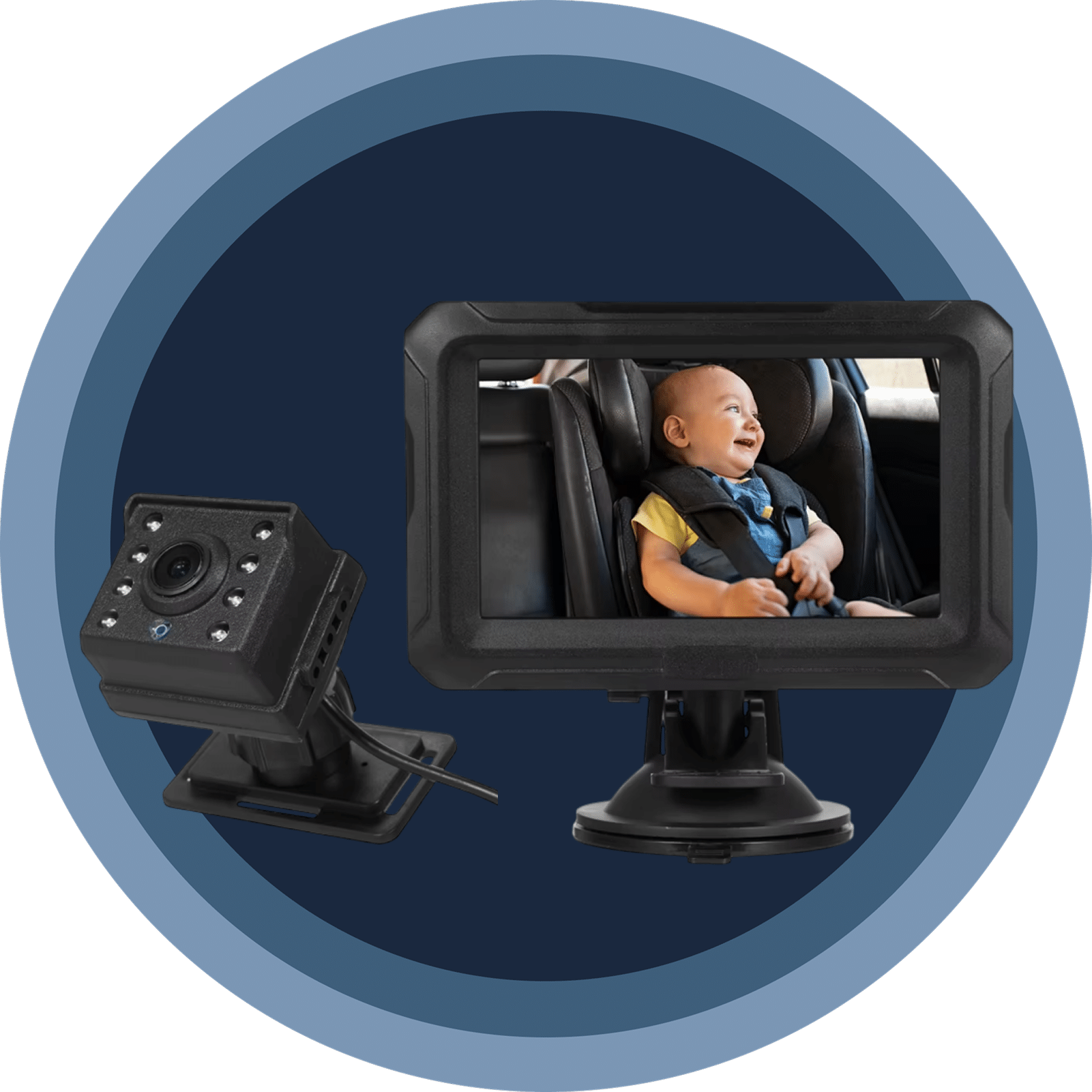 Installation is incredibly simple and takes just minutes. Attach the camera to your headrest, mount the monitor on your dashboard, and plug into your cigarette lighter.
