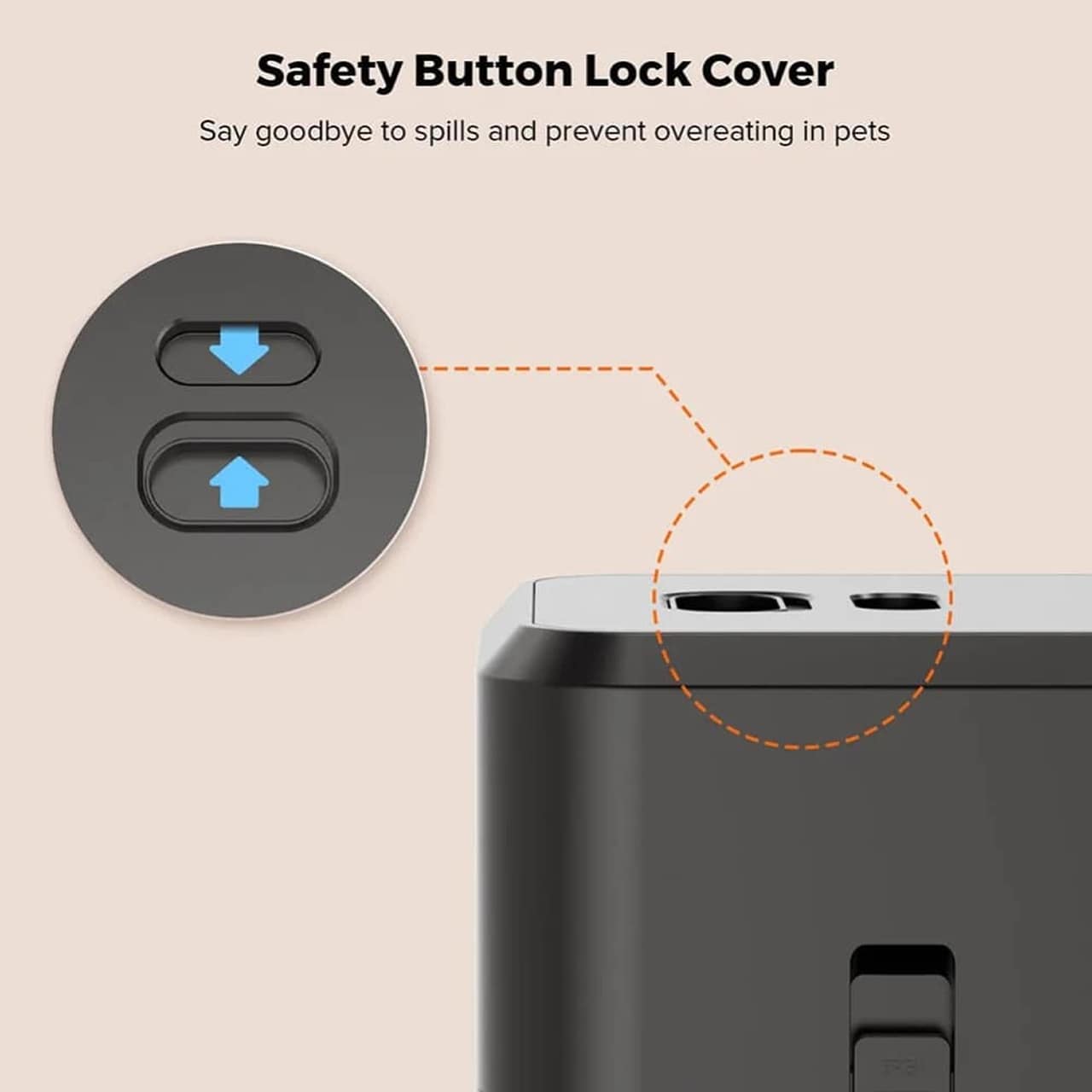 The feeder's stable base and reasonable weight provide good stability against tipping. However, if knocked over, the locked lid prevents major spills. The safety lock also protects programmed settings from being erased, so simply reposition and verify the schedule remains intact.