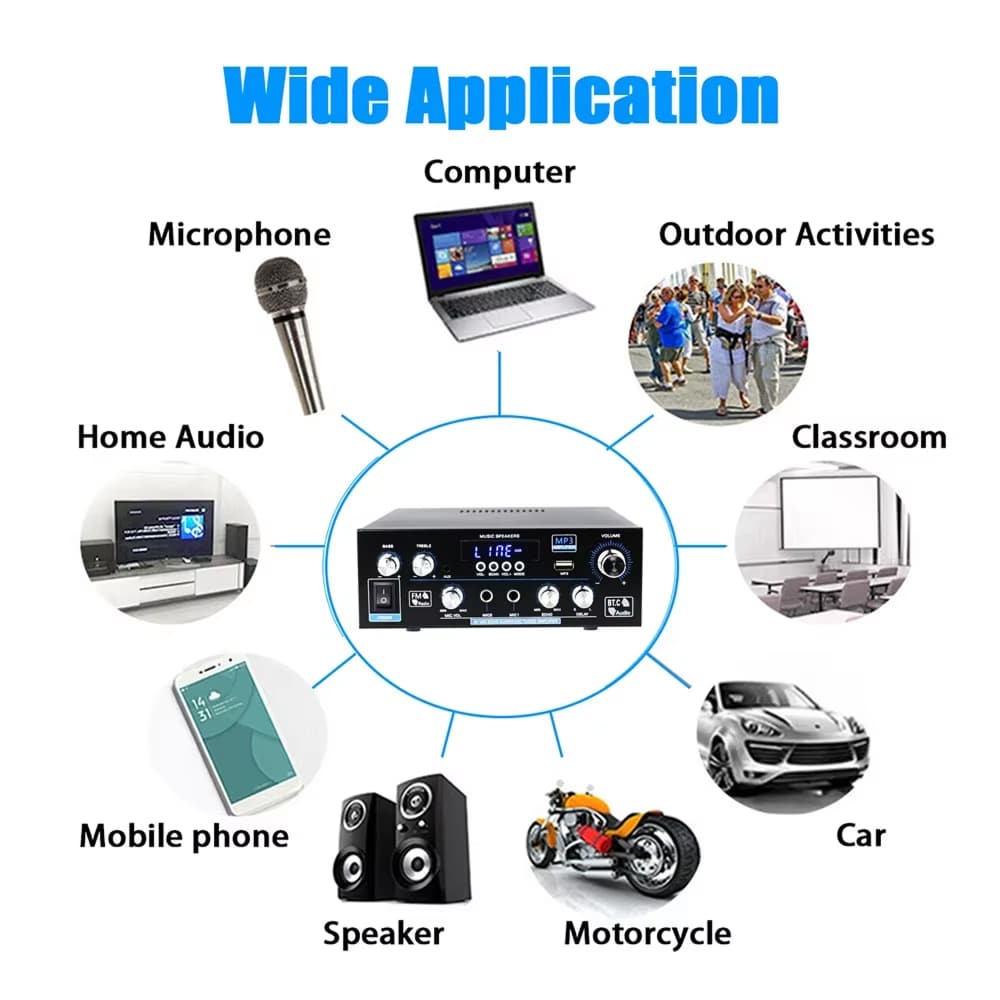 The amplifier supports any passive speakers with 4-16Ω impedance, covering virtually all home, car, and professional speakers. Check your speaker specifications to ensure compatibility within this range.