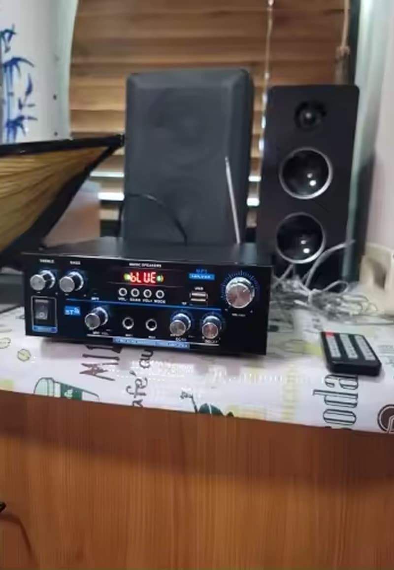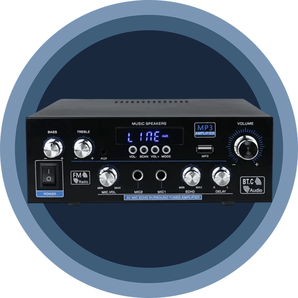 Yes, simply plug your USB drive into the front panel port. The amplifier automatically recognizes and plays MP3 files, with controls for track navigation and playback management.
