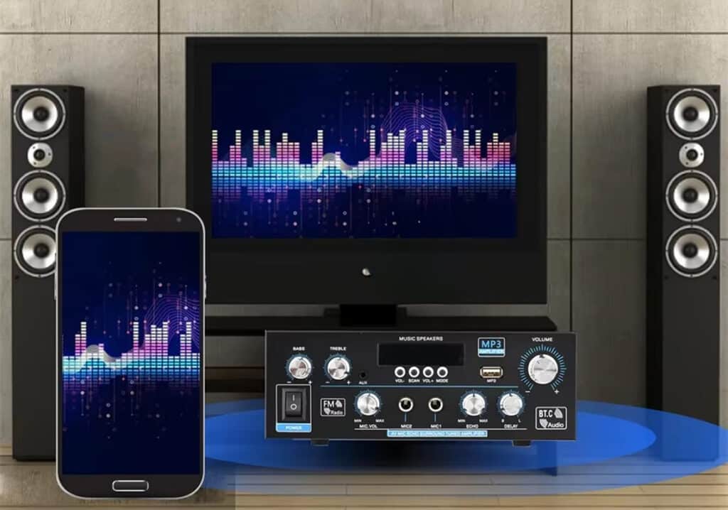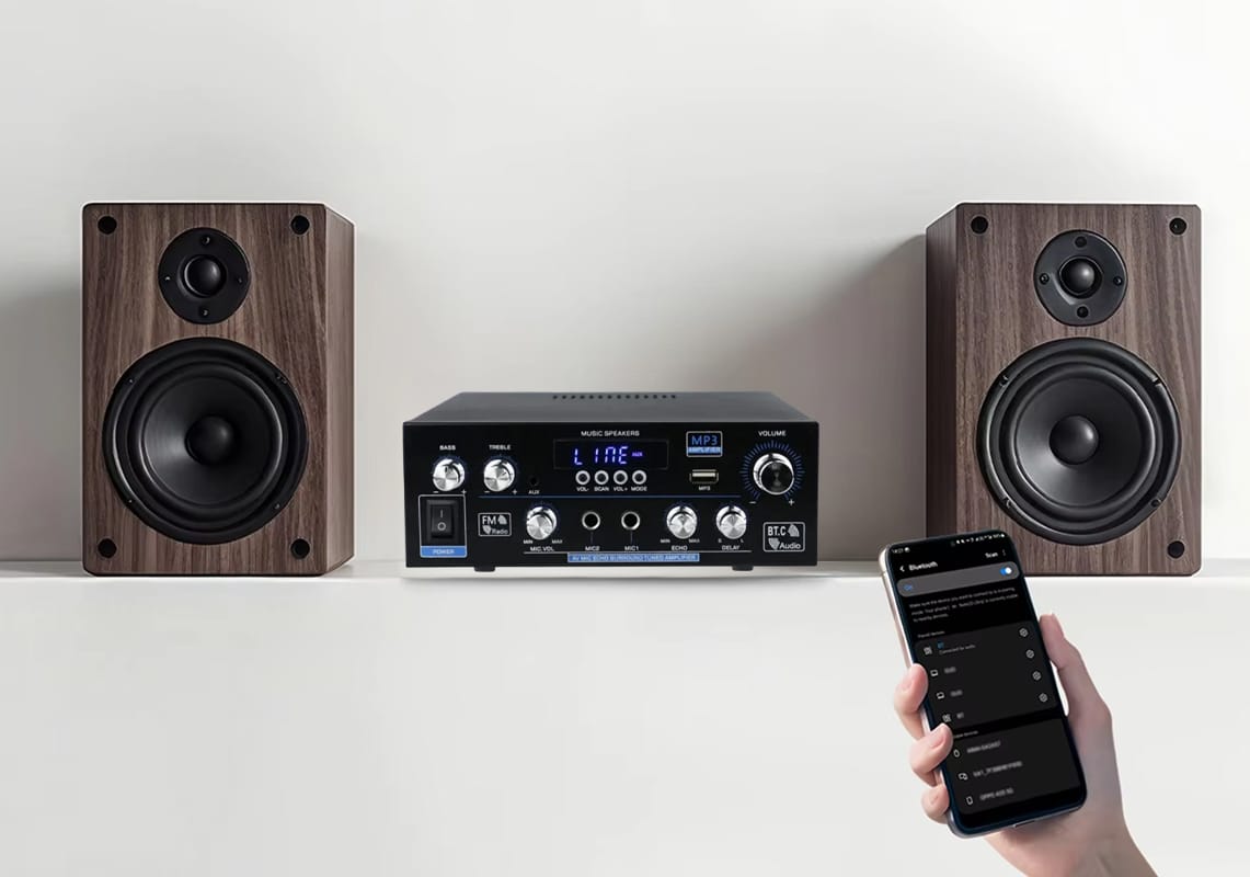 Bluetooth 5.0 provides stable connectivity up to 33 feet (10 meters) in open spaces. Walls and obstacles may reduce range slightly, but performance remains excellent in typical rooms.