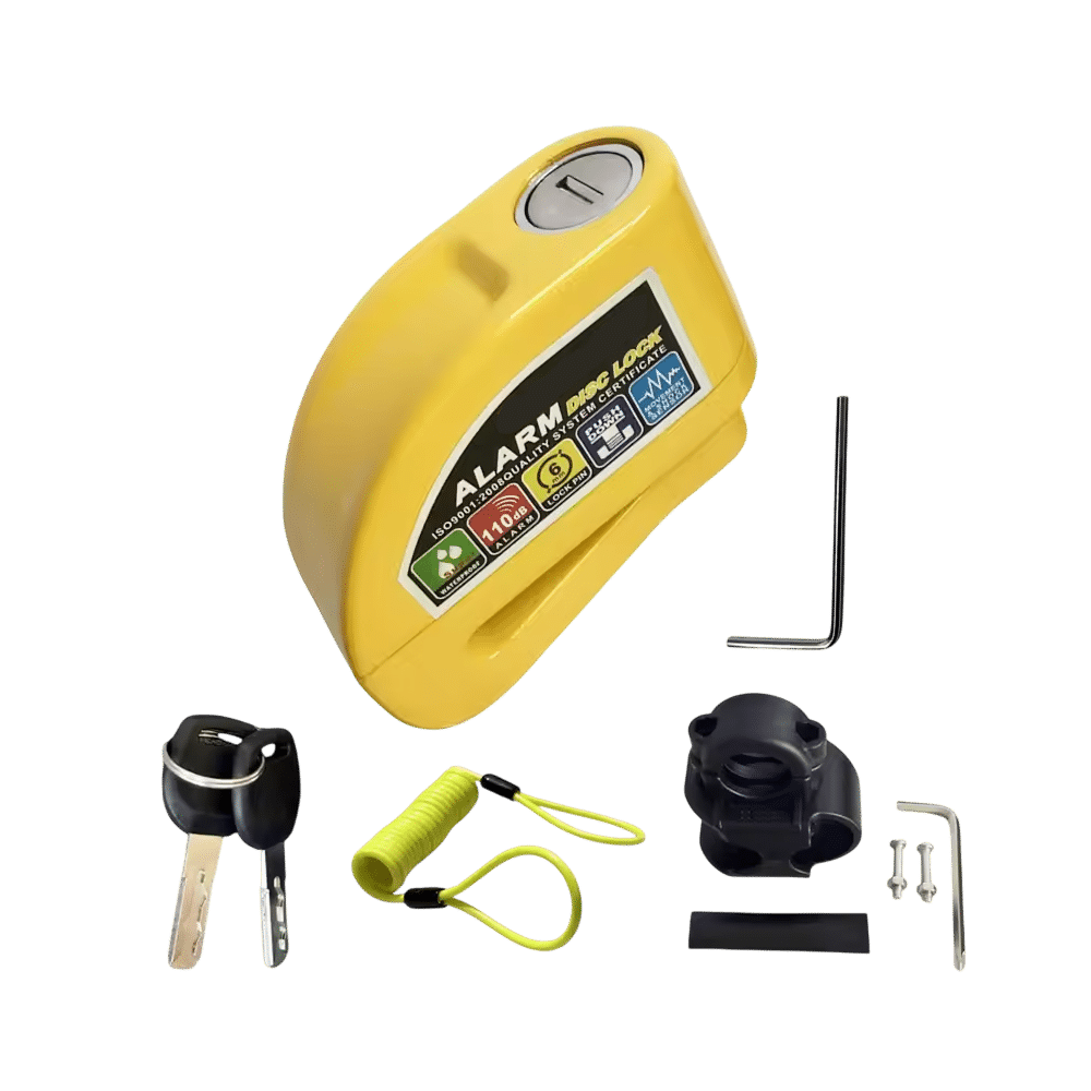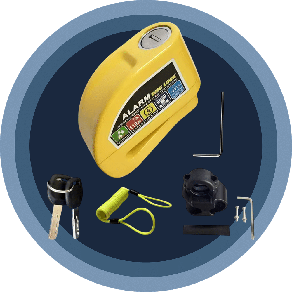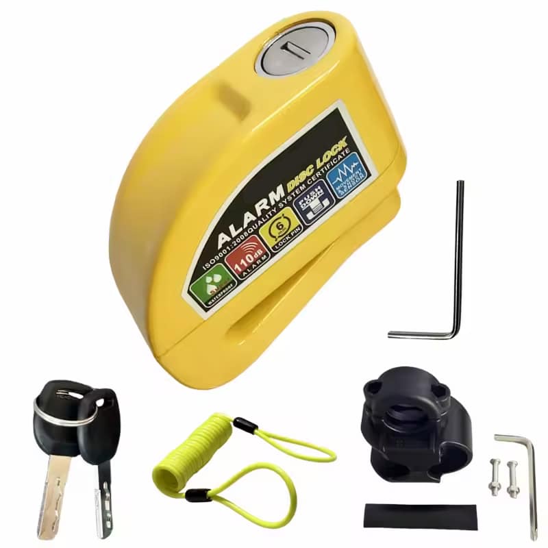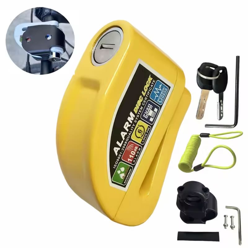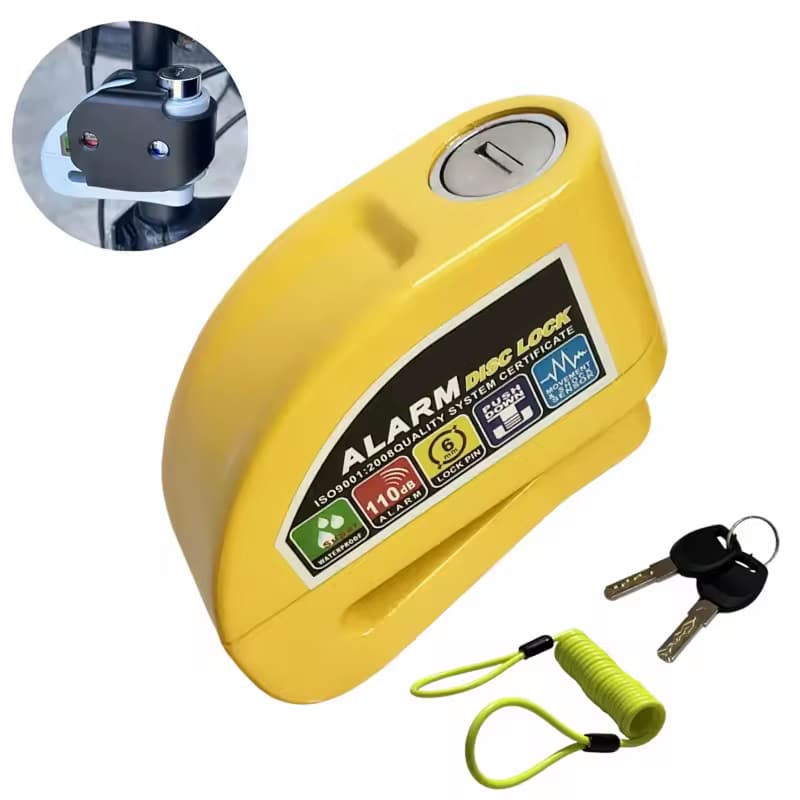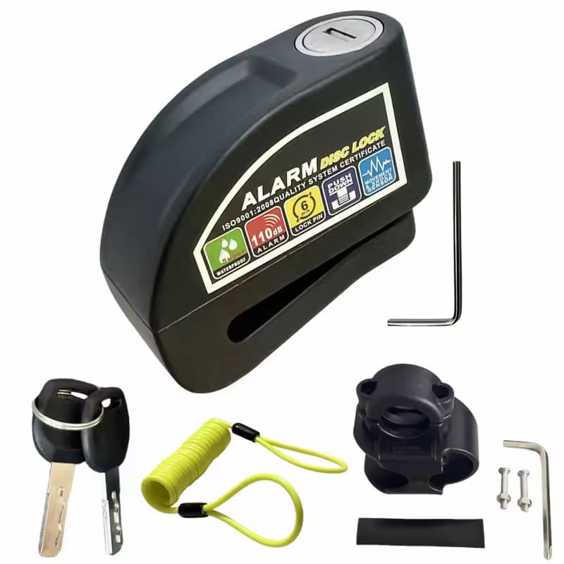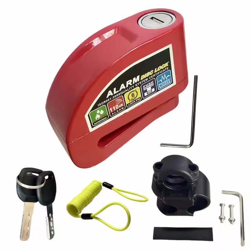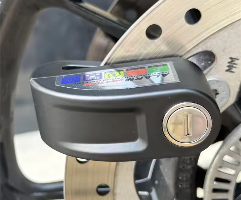 The 6mm lock pin fits standard disc brake rotor holes across most motorcycles, scooters, and bicycles. The RigeLocky accommodates various disc sizes, though extremely thick aftermarket rotors should be measured beforehand.