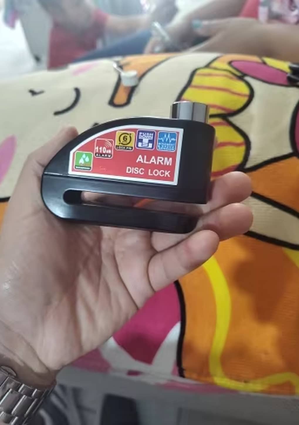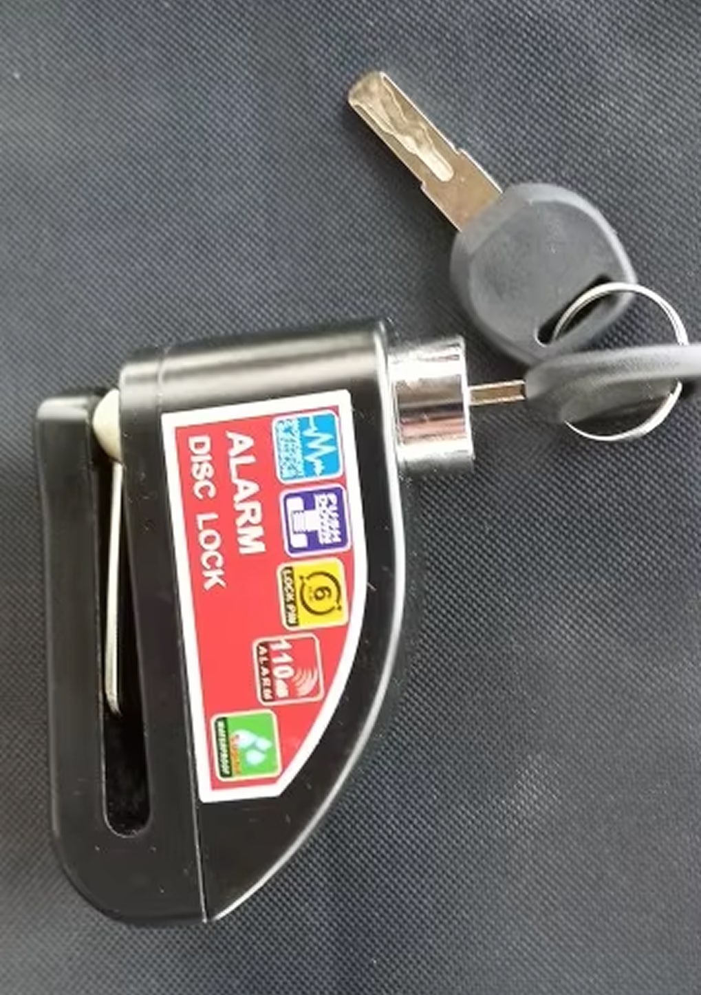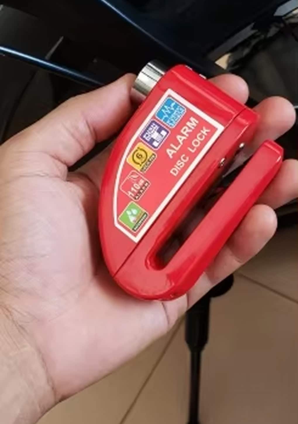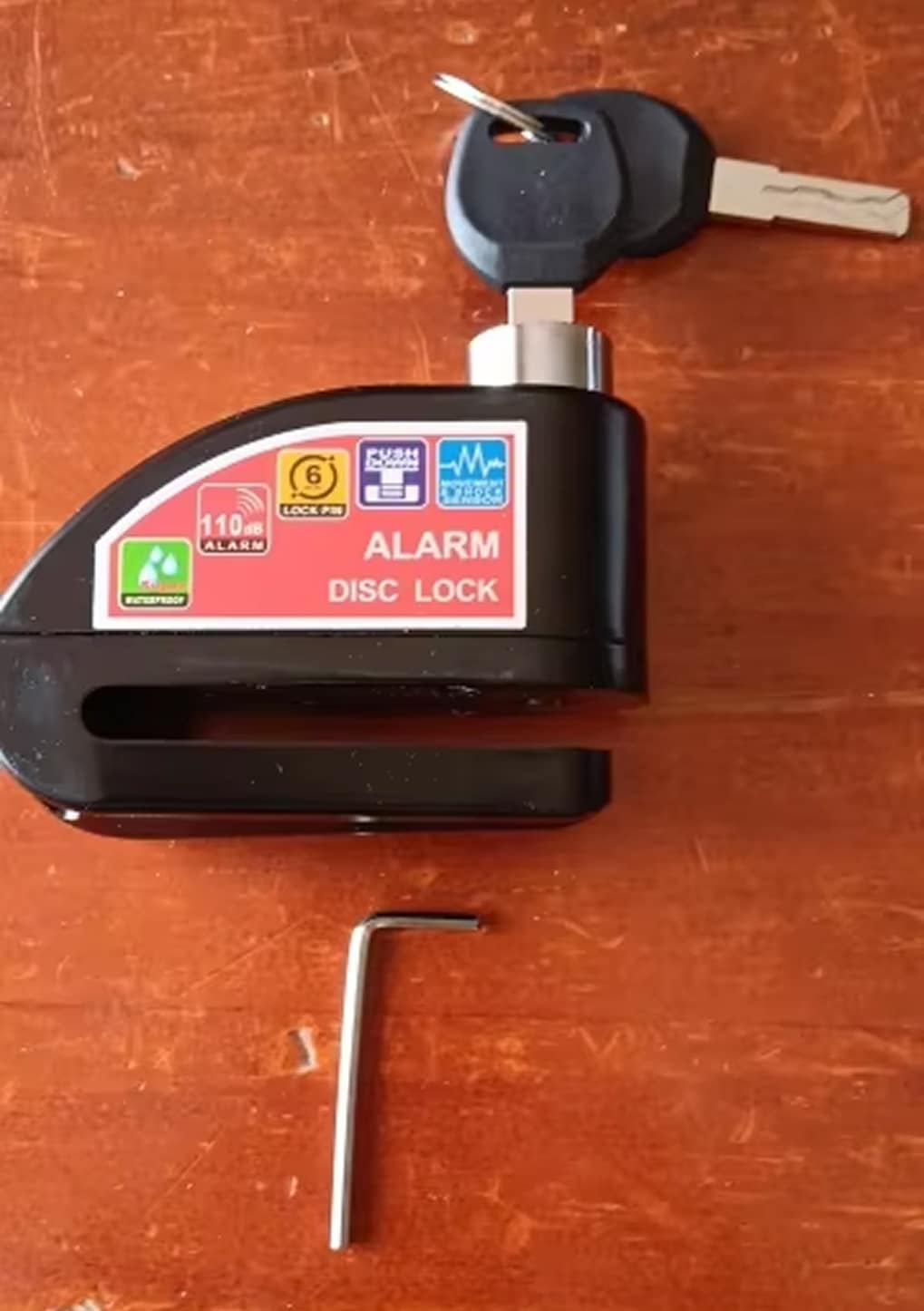The 6mm lock pin fits standard disc brake rotor holes across most motorcycles, scooters, and bicycles. The RigeLocky accommodates various disc sizes, though extremely thick aftermarket rotors should be measured beforehand.