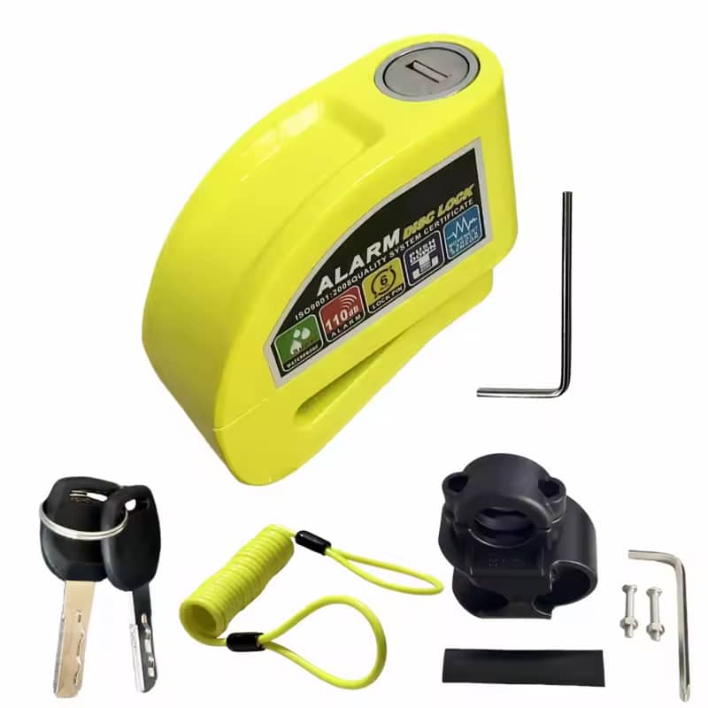 The RigeLocky Bicycle Alarm requires disc brakes for proper installation. The 6mm lock pin secures through the disc rotor holes, so vehicles without disc brake systems cannot accommodate this specific lock design.