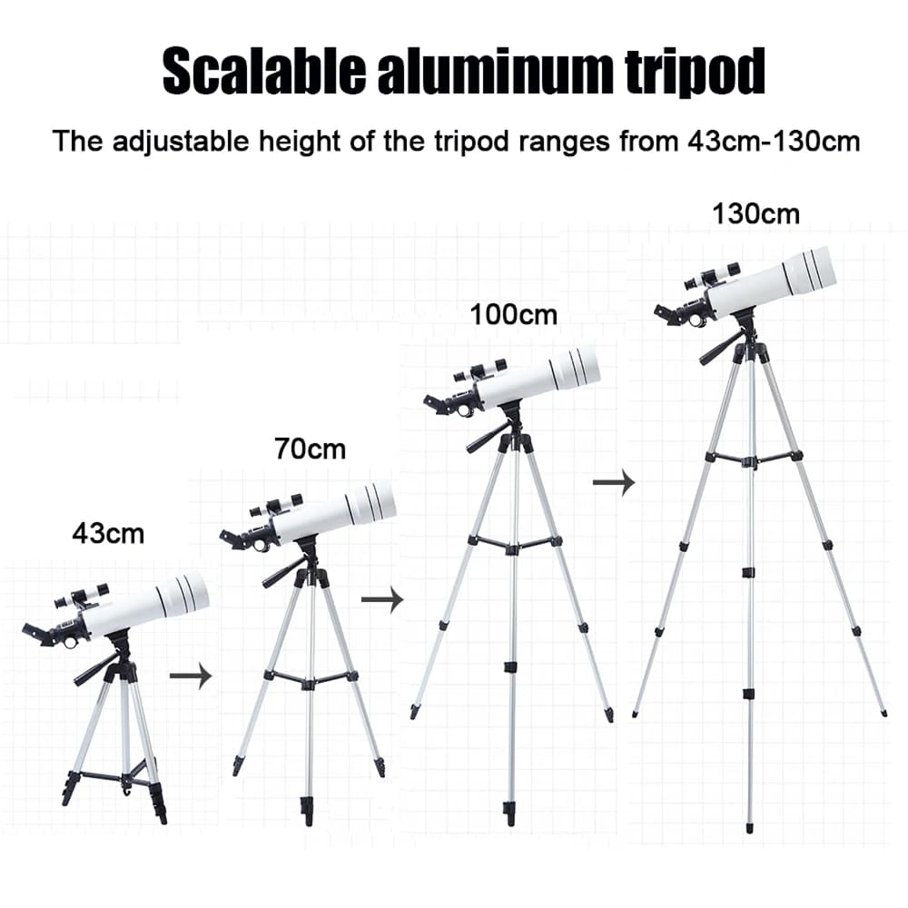 The adjustable aluminium tripod extends from 43cm to 130cm, accommodating users of all heights. Lightweight yet stable, the StariBud Telescope transports effortlessly to dark-sky locations for optimal viewing conditions.
