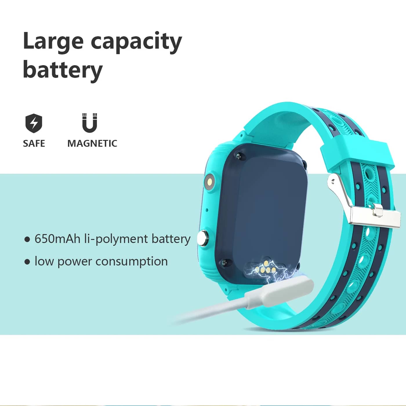 The 650mAh battery provides full-day usage under normal conditions. Battery life varies based on usage frequency, but most families find it lasts 1-2 days between charges with typical communication and tracking activity patterns.