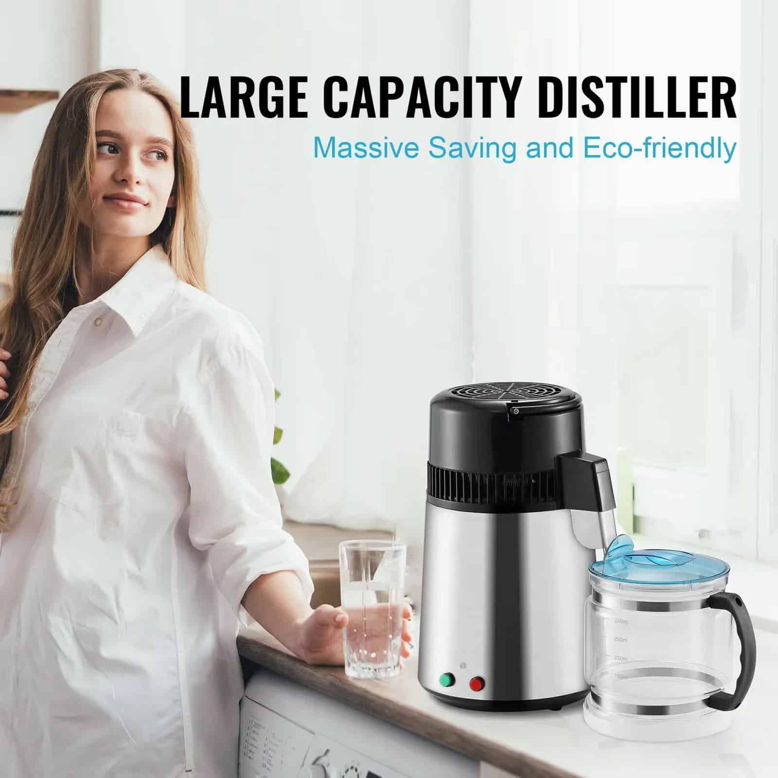 Distilled water has a clean, neutral taste without chlorine or mineral flavors. The activated carbon filter removes any residual compounds, ensuring fresh-tasting water every time.