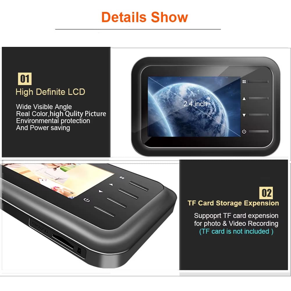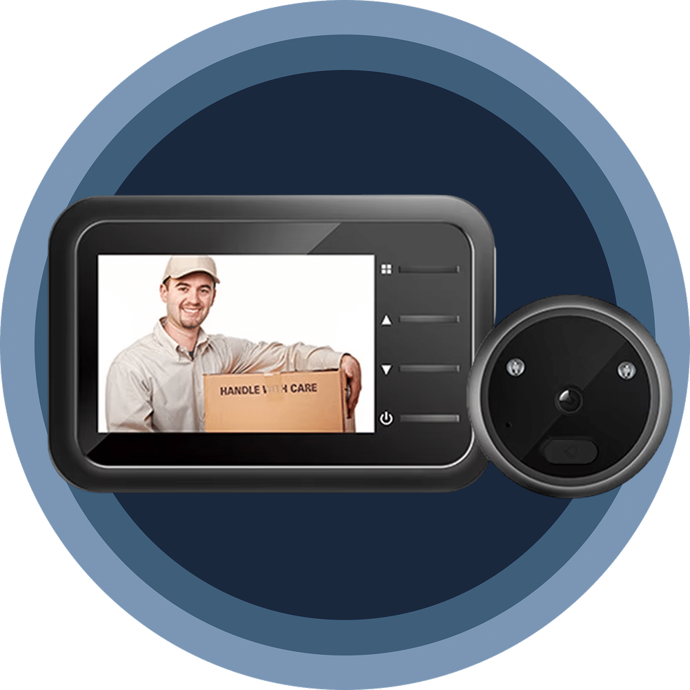 The VizoEntry camera captures a wide 120-degree viewing angle with 145-degree overall coverage, ensuring you see visitors clearly even when they stand to the side of your door.