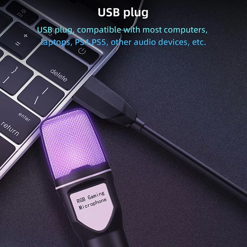 The RGB lighting activates automatically when connected. The dynamic lighting effects cycle through various colors to create an engaging visual atmosphere for your streaming and gaming setup without manual adjustment needed.