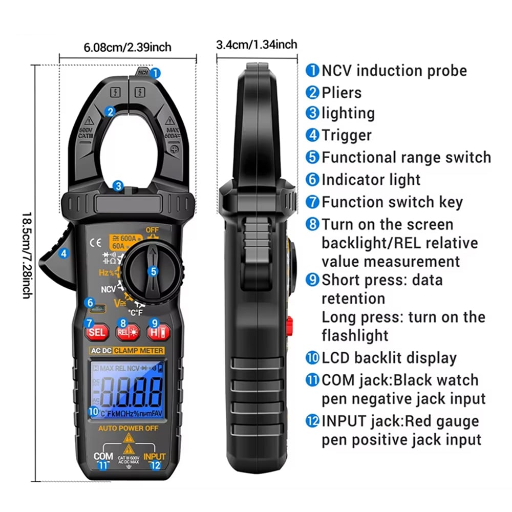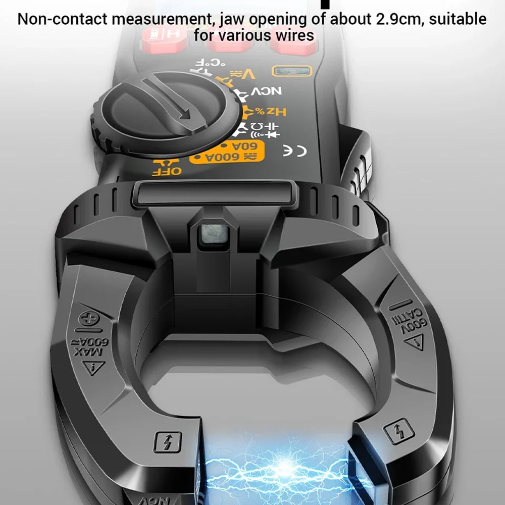The clamp jaw opens approximately 2.9cm (1.14 inches), accommodating most residential and commercial wire gauges including bundled cables. Perfect for standard electrical panel work and industrial applications.