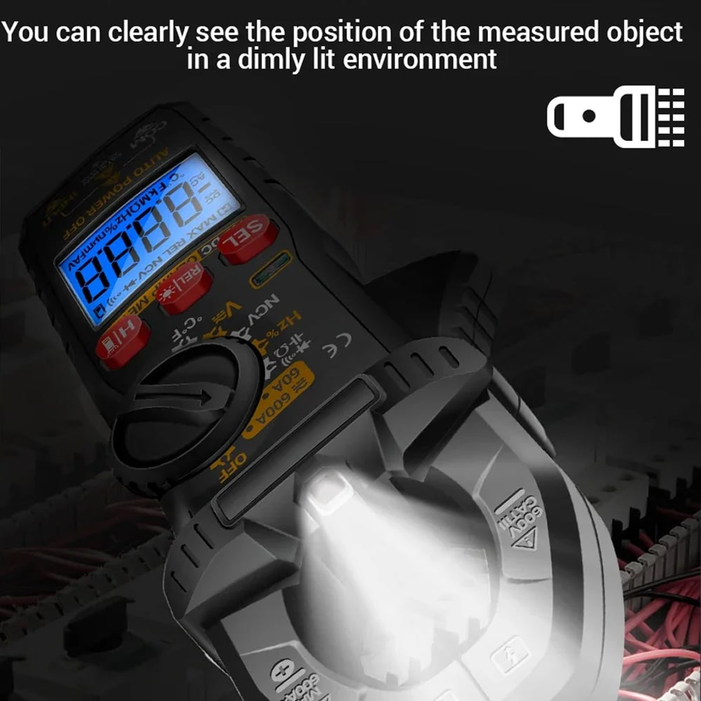 The LCD backlight provides excellent visibility in dark environments. While readable outdoors, direct sunlight may require shading the display. The high-contrast 6000-count screen remains clear in most conditions.
