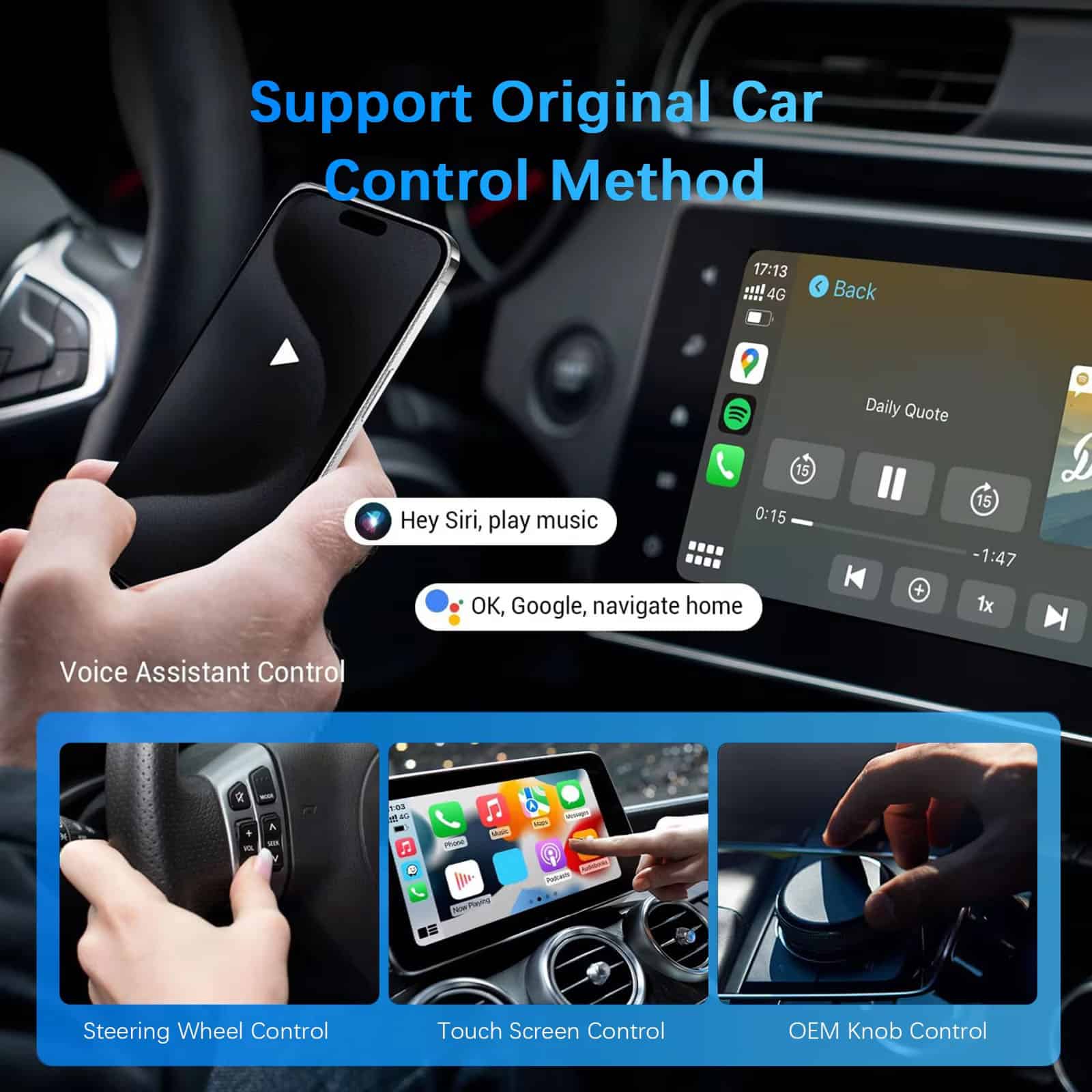 The WireZape works seamlessly with your car's existing steering wheel buttons, touchscreen, and factory knobs, preserving the familiar control experience you already know and trust.